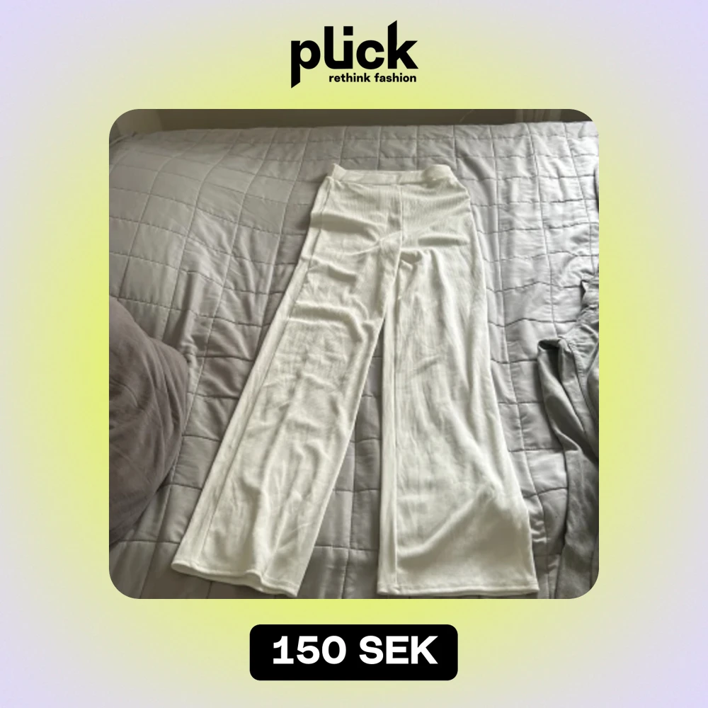 Ett par vita kostym byxor i thightsmaterial, sitter bra på och är hur bekväma som helst man tänker inte på att det är thights material. Dem ser ut som vanliga kostymbyxor. Byxorna e ribbade