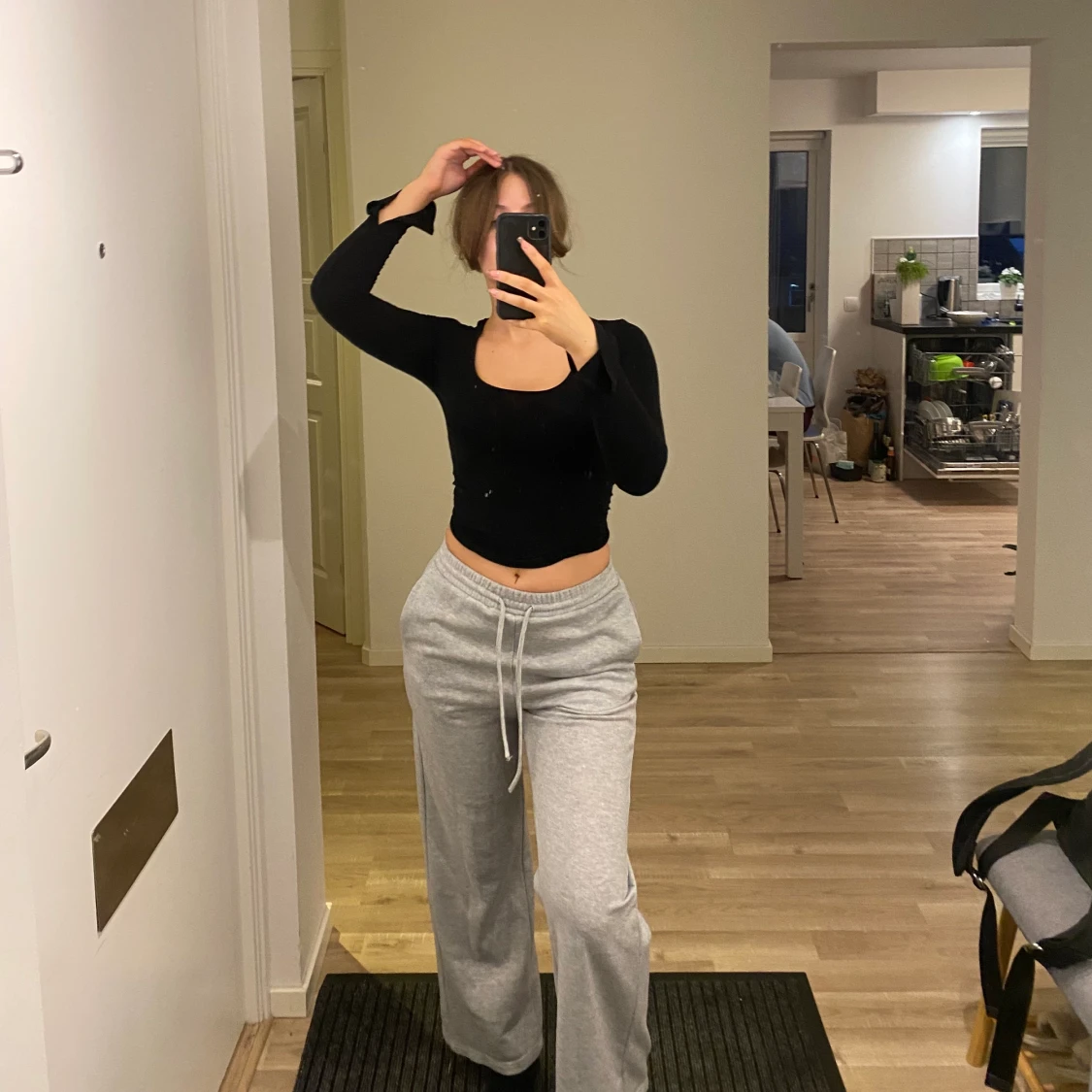 Gråa mjuksbyxor som är raka i passformen. Storlek XS och knappt använda.