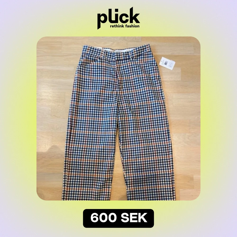 Helt nya rutiga kostymbyxor i blandad färg. Highwaist. Lappen kvar. Storlek W26L26. Nypris 899kr