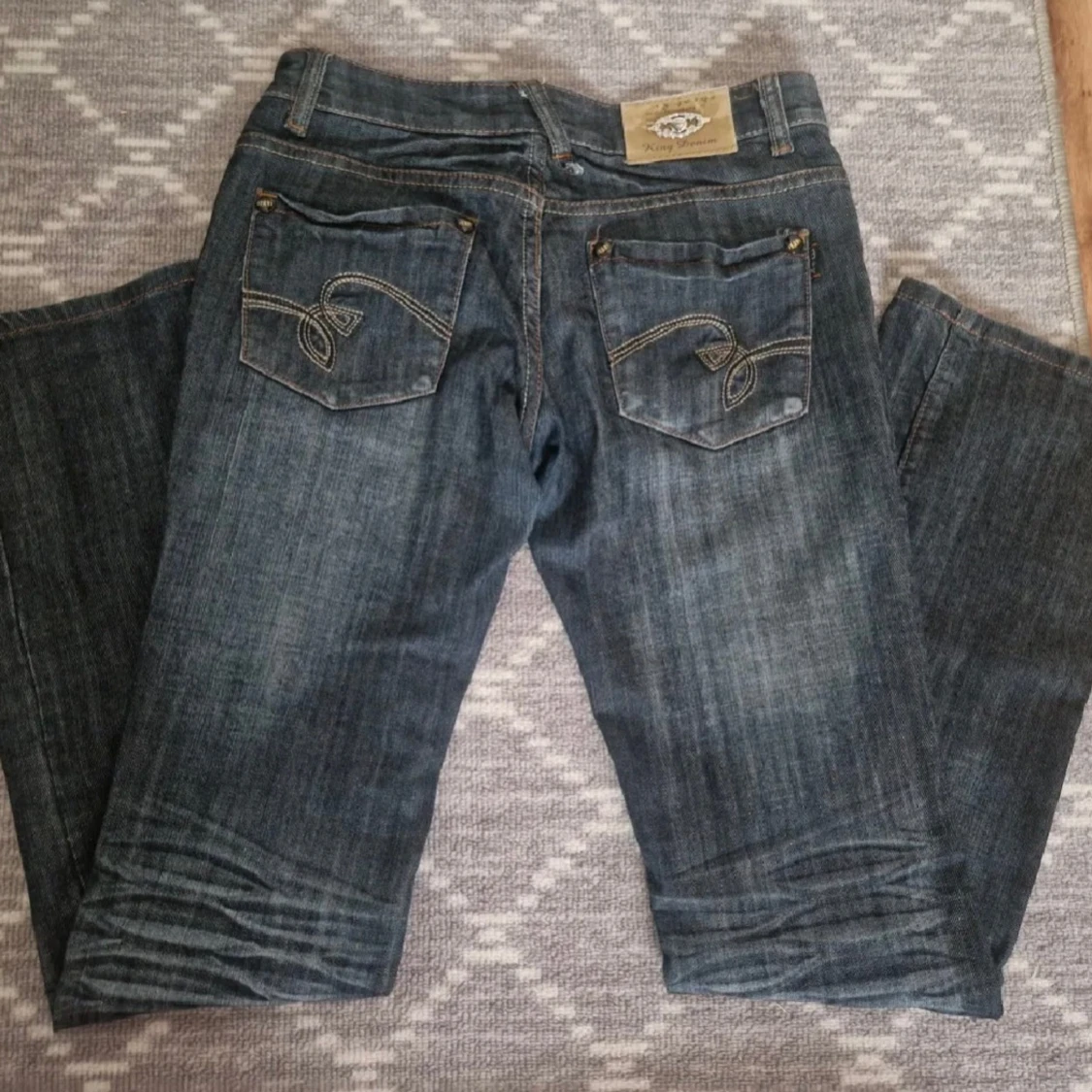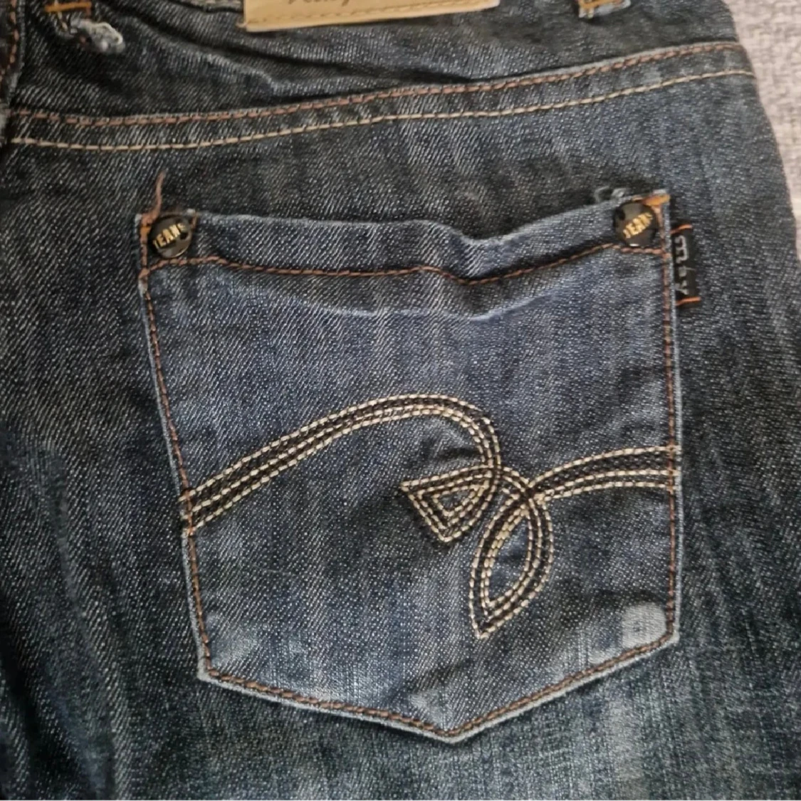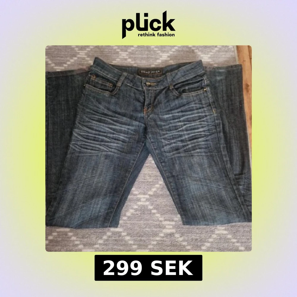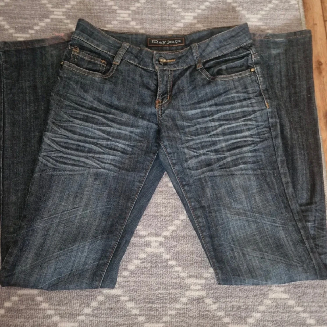 Snygga mörkblå jeans från May Jeans med coola broderade detaljer på bakfickorna och slitningar framtill. Klassisk femficksmodell med raka ben och kontrastsömmar. Perfekta för dig som gillar en avslappnad men ändå stilren look.