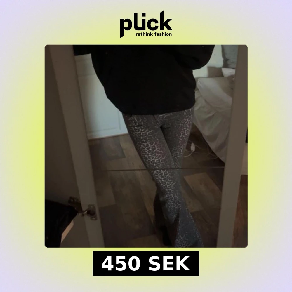 Snygga grå byxor med leopardmönster. De har en bootcut-stil som ger en trendig look. Perfekta för att sticka ut med ett coolt mönster. Säljer för att dom är för stora så därav aldrig använda eller tvättade! Alltså helt nya!