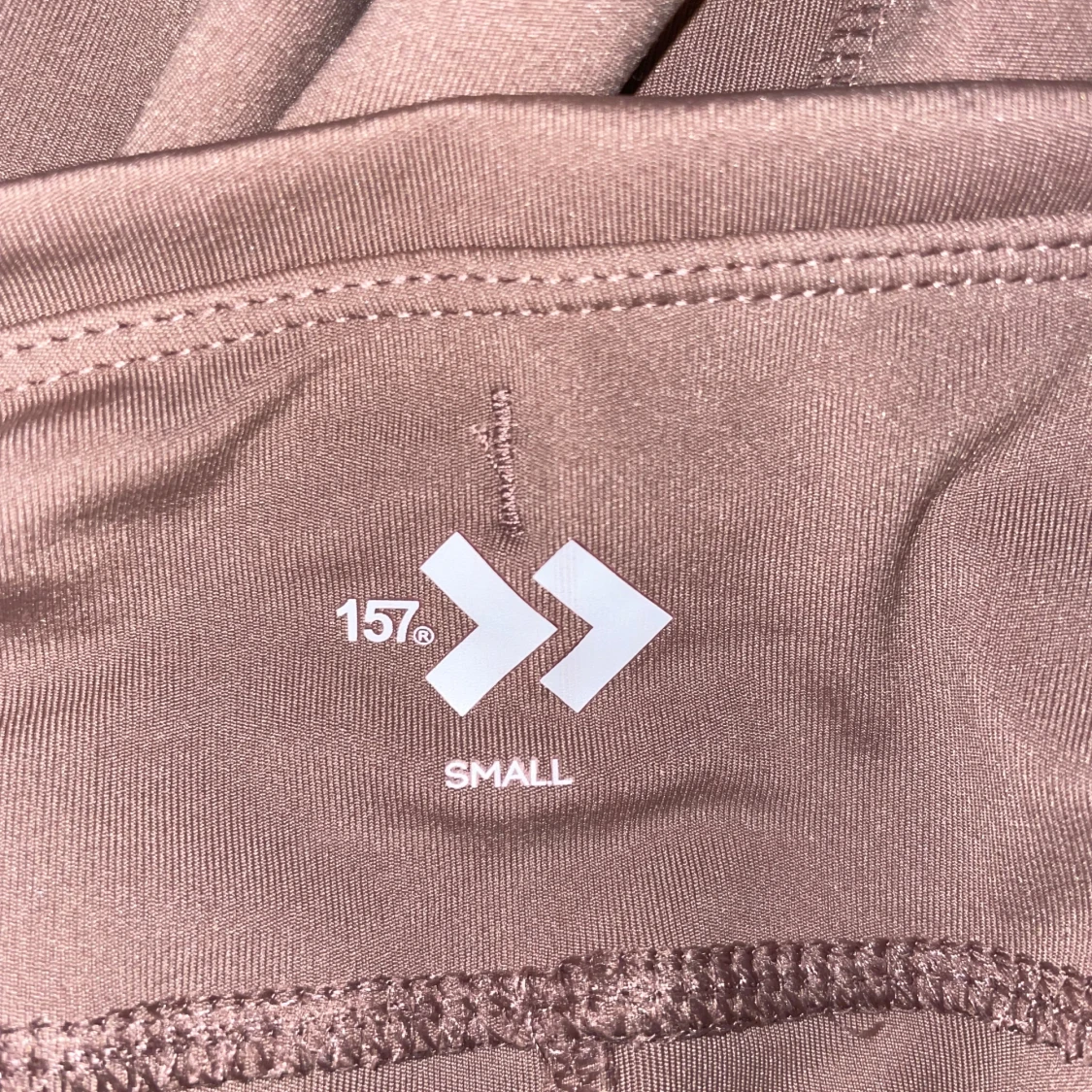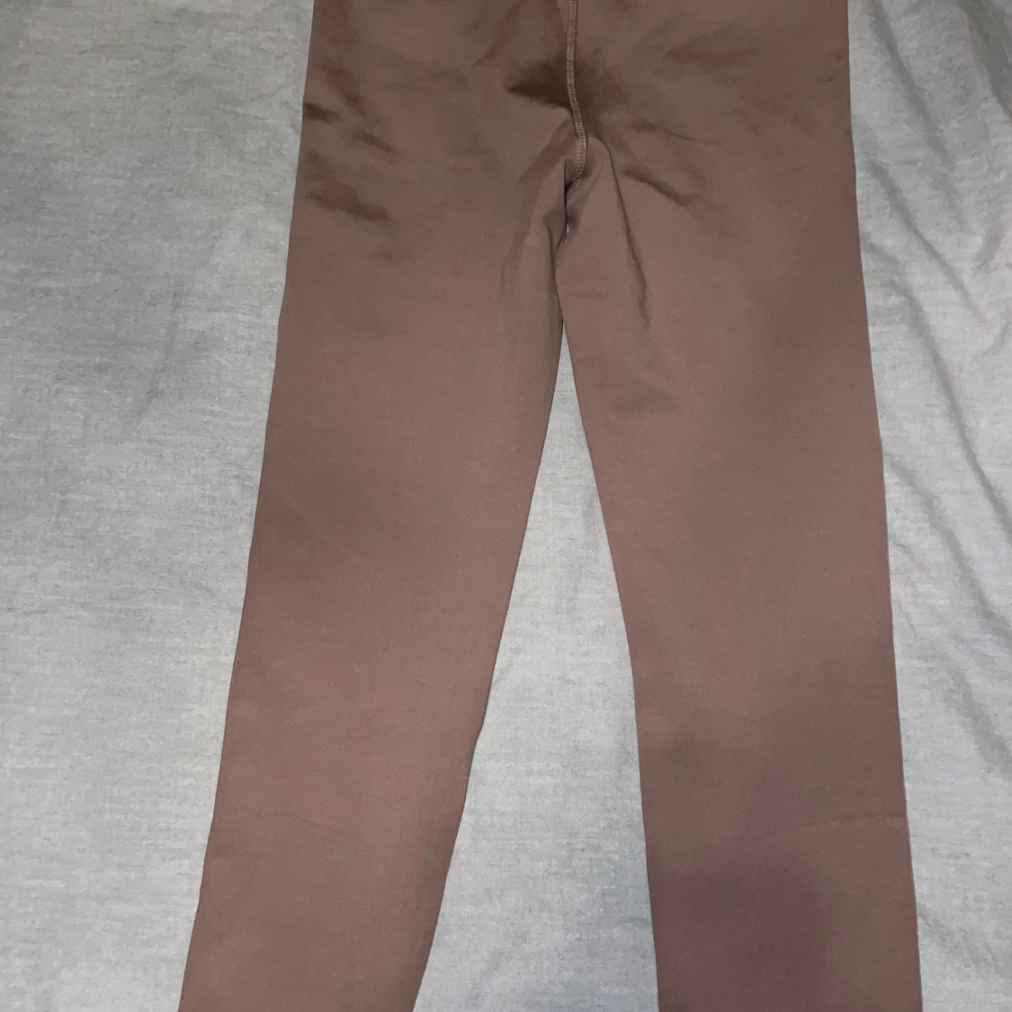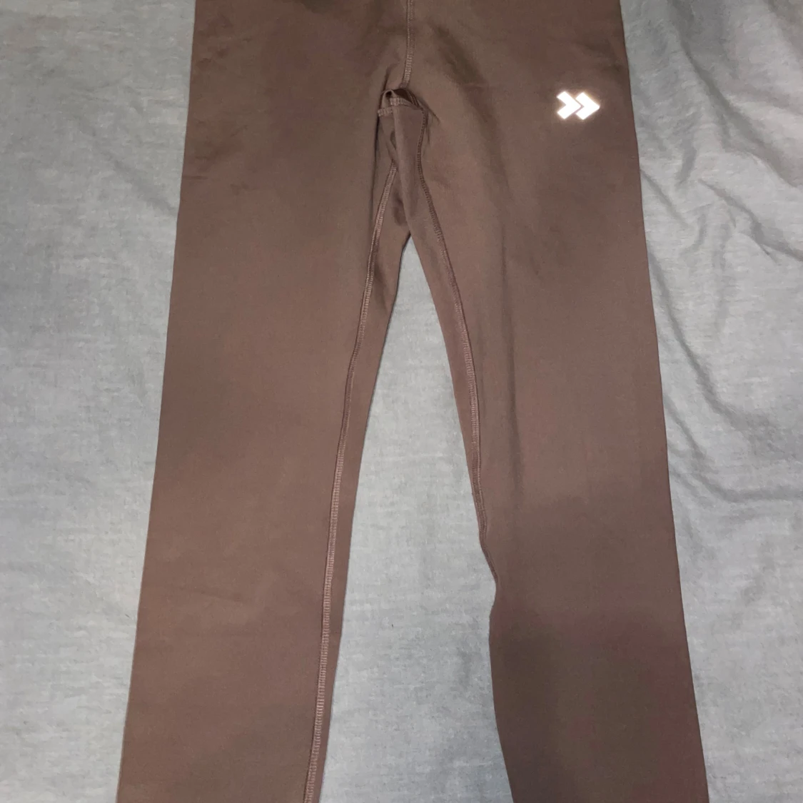 Snygga brun/rosa leggings från 157 i storlek small. De är stretchiga och har en tight passform, perfekta för träning eller chill. Materialet är mjukt och följsamt syntet, med en diskret logga på höften. Enkla att matcha med oversized hoodie eller crop top.