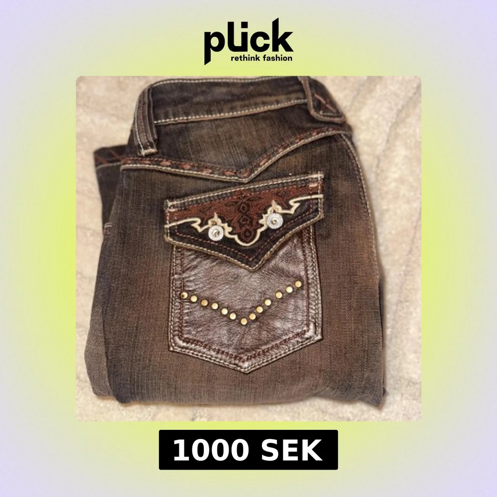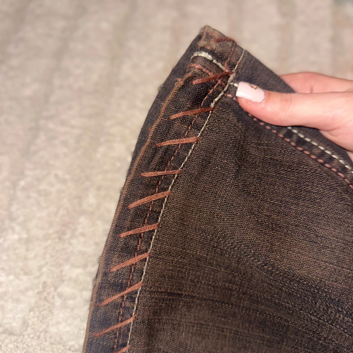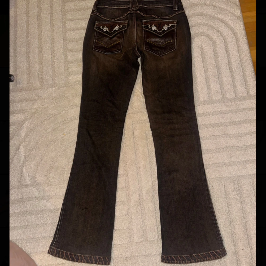 ❣️Priset kan diskuteras❣️ Snygga bruna bootcut vintage jeans i märket Antik Denim. Dem är väldigt unika o svåra att få tag i. Dem har bootcut passform och unika bakfickor i skinnlook, dekorerade med nitar och broderier i guld och vitt. Jeansen har kontrastsömmar och coola detaljer längs fickor och benslut. Perfekta för dig som vill sticka ut med din stil. Köpte dem för högt pris second hand och har aldrig använt dem, förra ägaren har bara använt dem några fåtal gånger så de är så gott som nya💕💕🫶🏼