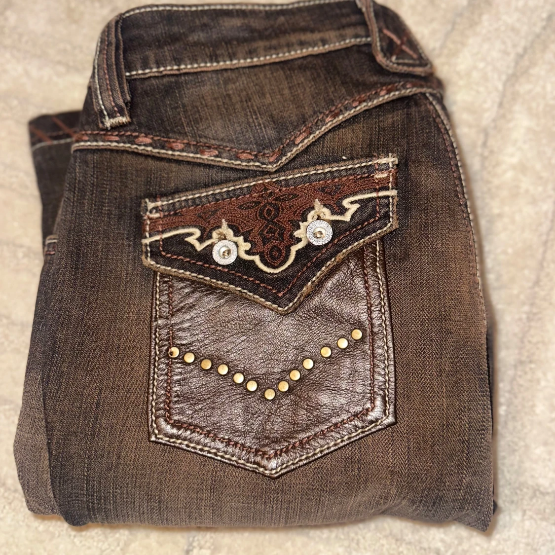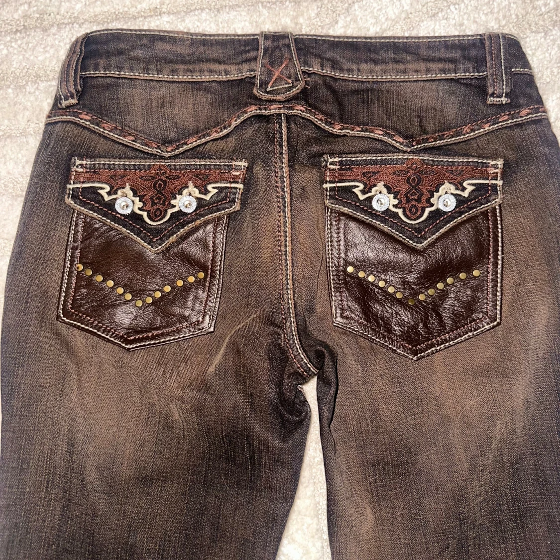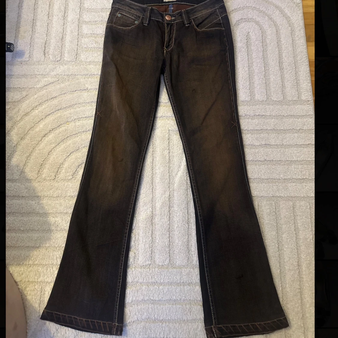 ❣️Priset kan diskuteras❣️ Snygga bruna bootcut vintage jeans i märket Antik Denim. Dem är väldigt unika o svåra att få tag i. Dem har bootcut passform och unika bakfickor i skinnlook, dekorerade med nitar och broderier i guld och vitt. Jeansen har kontrastsömmar och coola detaljer längs fickor och benslut. Perfekta för dig som vill sticka ut med din stil. Köpte dem för högt pris second hand och har aldrig använt dem, förra ägaren har bara använt dem några fåtal gånger så de är så gott som nya💕💕🫶🏼