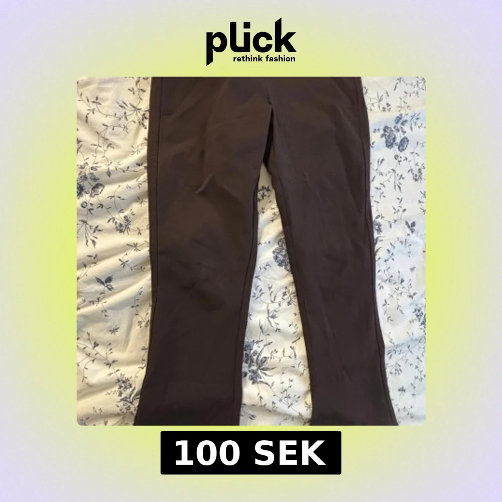 Snygga bruna byxor från Gina Tricot i bootcut-modell. Byxorna har två bakfickor med lock och knapp, och är tillverkade i ett mjukt bomullsmaterial. Perfekta för dig som gillar en klassisk men trendig look.
