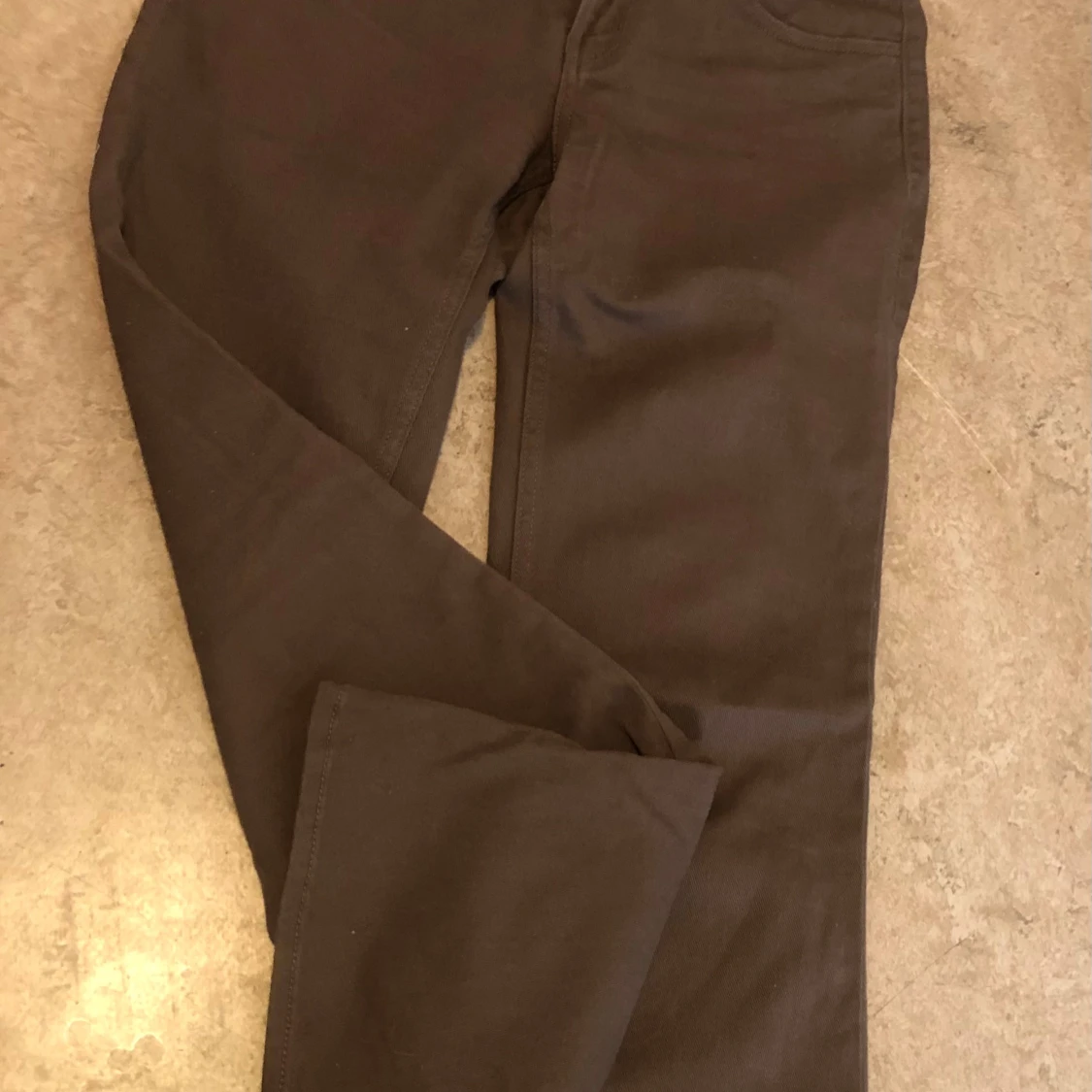 Snygga bruna byxor med bootcut-modell och klassisk femficksdesign. Tillverkade i mjuk bomull med dragkedja och knapp framtill. Perfekta för dig som gillar en stilren och enkel look med lite utsvängda ben.