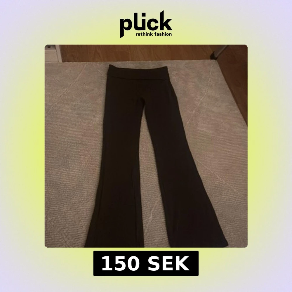 Snygga bruna bootcut mjukisar med låg midja man viker ner. Perfekta för en stilren look. Byxorna har en bekväm passform och är gjorda i ett mjukt material. Säljer då det är för stora för mig. Storlek small men skulle också passa medium.