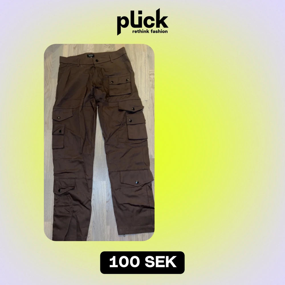 Bruna cargobyxor från bohooman storlek m aldrig använda
