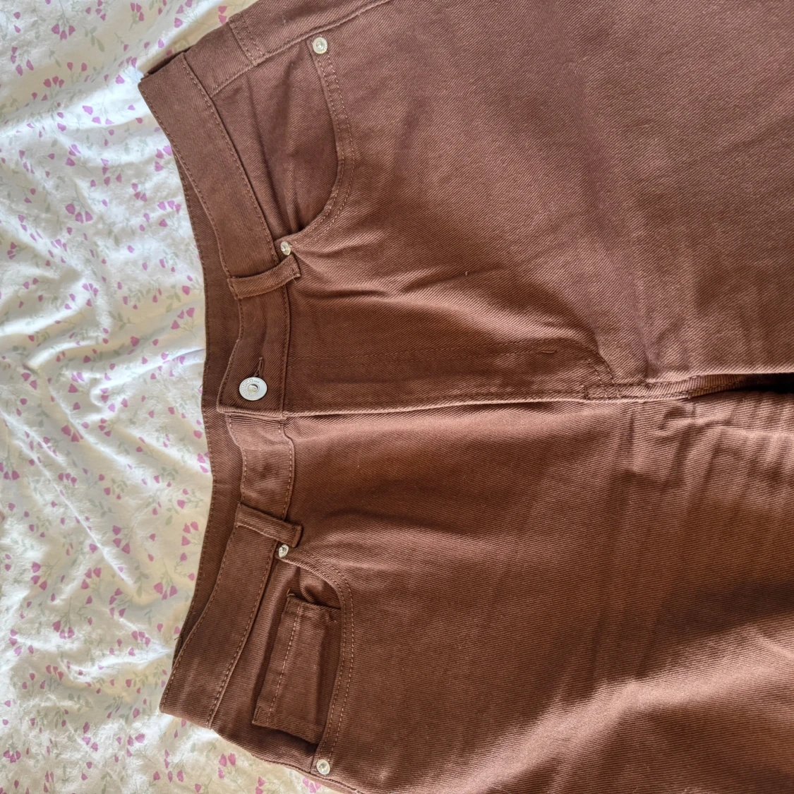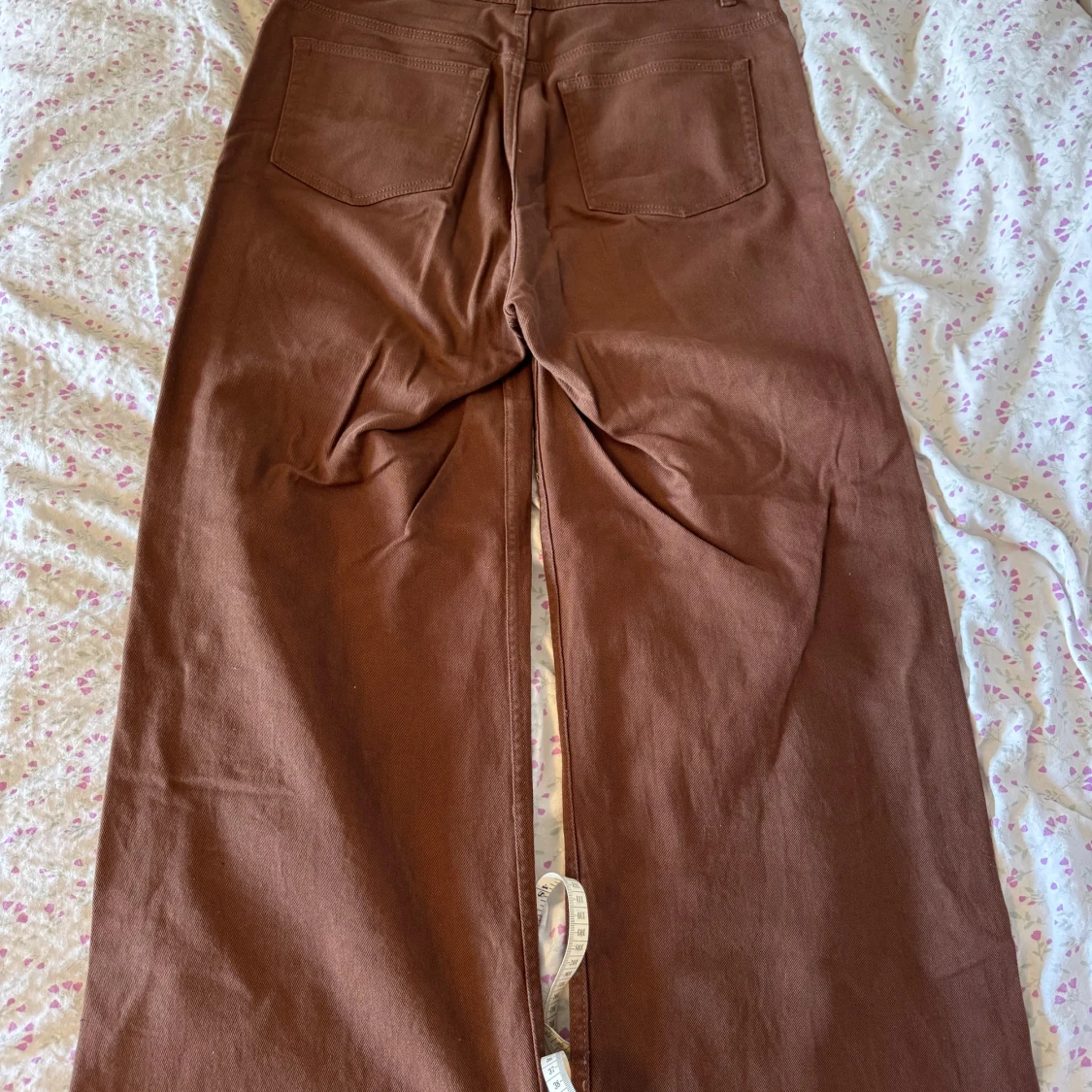 Midja 88cm, längd 104cm. Straight fit, hög midja. Bomull jeans. Säljer pga för stora, nopprar vid innerlåren. Behöver strykas men annars inga fläckar, hål eller knäskålar.