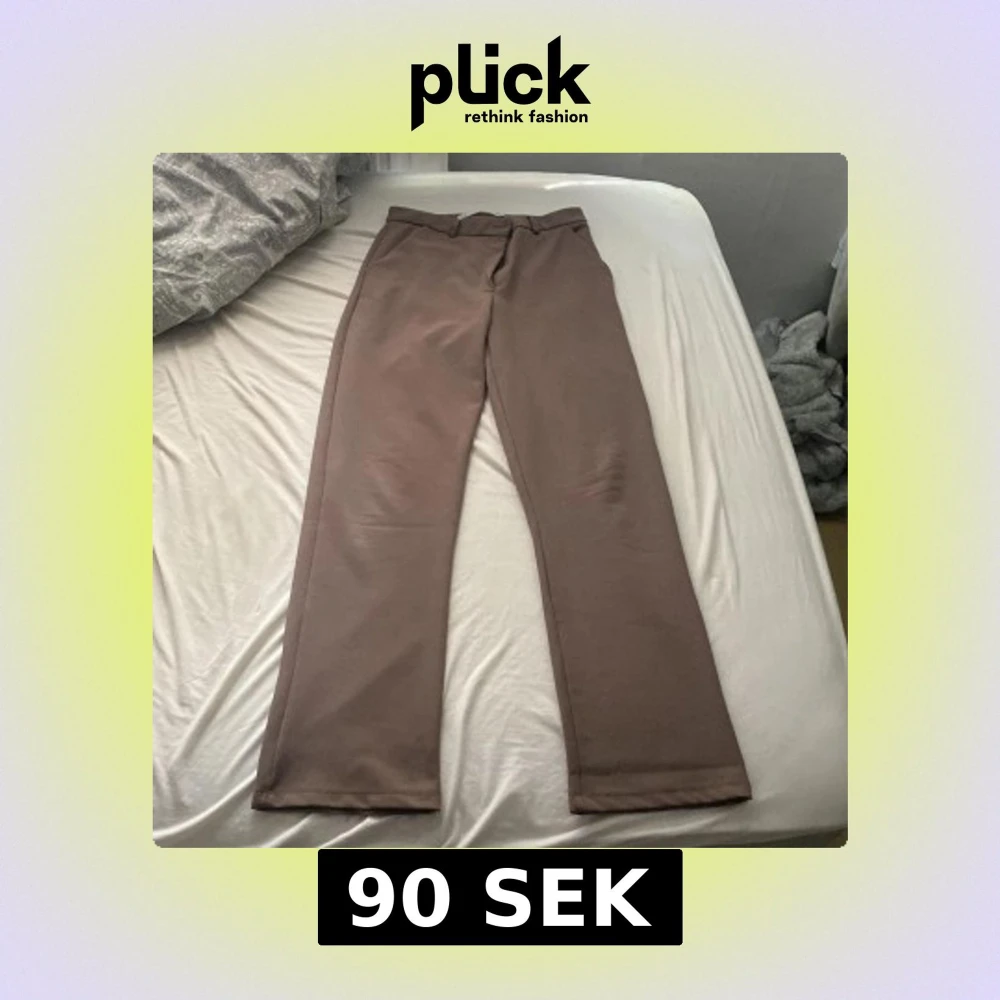 Snygga bruna kostymbyxor med en klassisk rak passform. De har en stilren design med knäppning fram och är perfekta för en elegant och snygg look!
