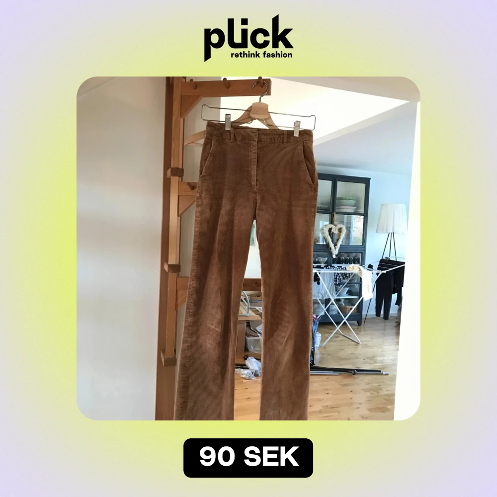 Säljer ett par snygga bruna manchesterbyxor i storlek M. De har en klassisk design med medel hög midja och raka ben. Perfekta för höst och vinter, och de ger en skön retrovibe. Byxorna har fickor både fram och bak, vilket är superpraktiskt. Passar både till vardags och lite mer uppklädda tillfällen.