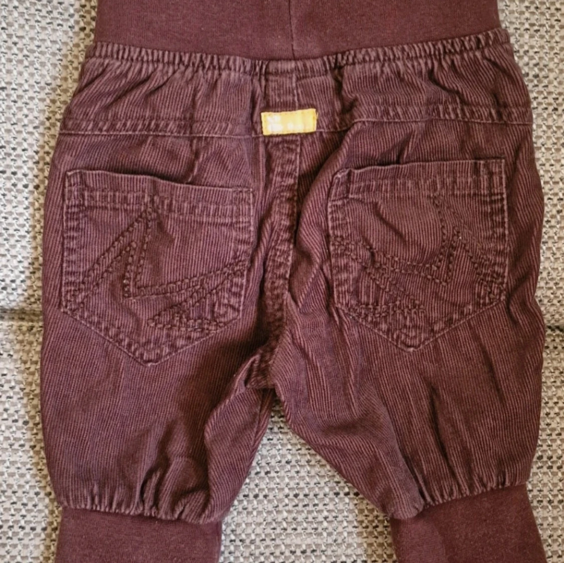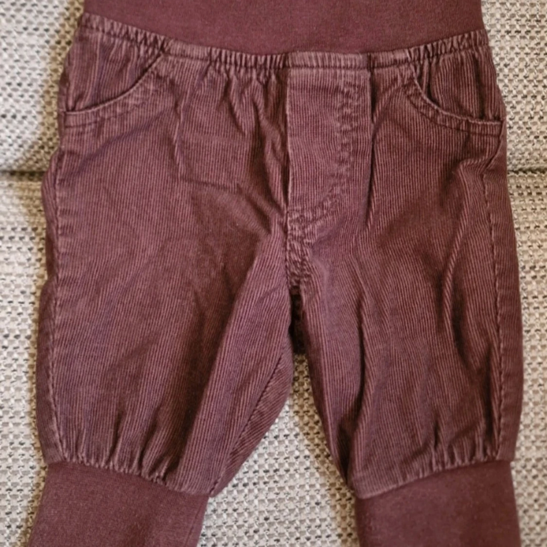 Mysiga bruna manchesterbyxor till bebisen med breda muddar i midjan och vid bensluten. Byxorna har två framfickor och två bakfickor med broderade detaljer. Perfekta för en avslappnad och chill stil. Utöver lite ytludd har jag inte sett några skavanker.