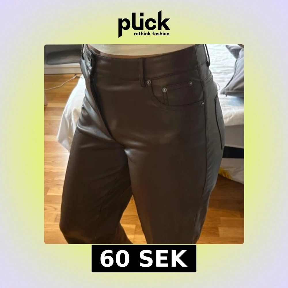 Snygga bruna byxor i skinnimitation från Pimkie med klassisk femficksdesign och raka ben. Byxorna har hög midja och stängs med dragkedja och knapp. Perfekta för dig som vill ha en edgy och trendig look.