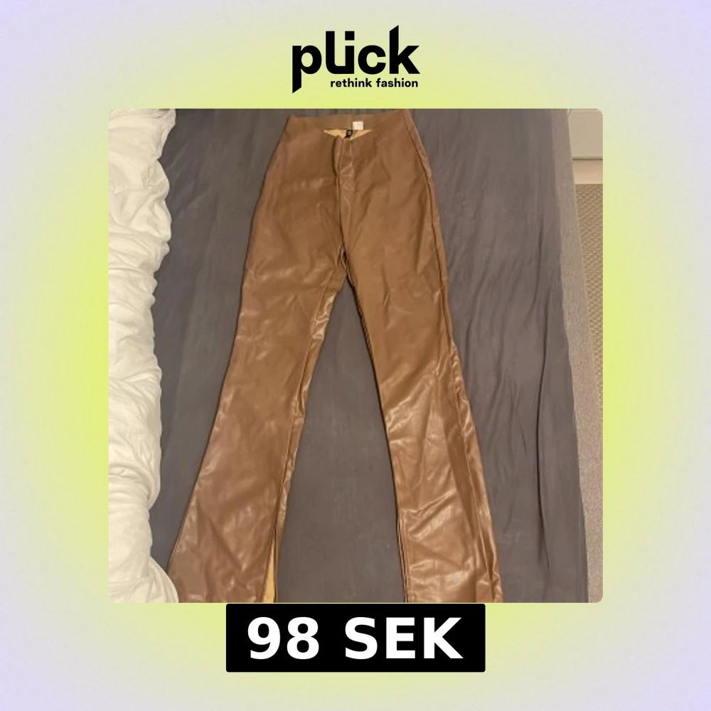 Snygga bruna skinnbyxor med hög midja och bootcut-stil. Även slit lite längre ner på byxorna.