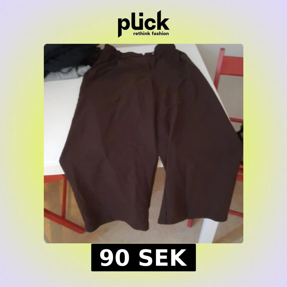 Säljer ett par bruna byxor med bred passform och croppad längd. Perfekta för dig som gillar en avslappnad stil och vill ha något bekvämt men ändå trendigt. Passar bra till sneakers eller sandaler.