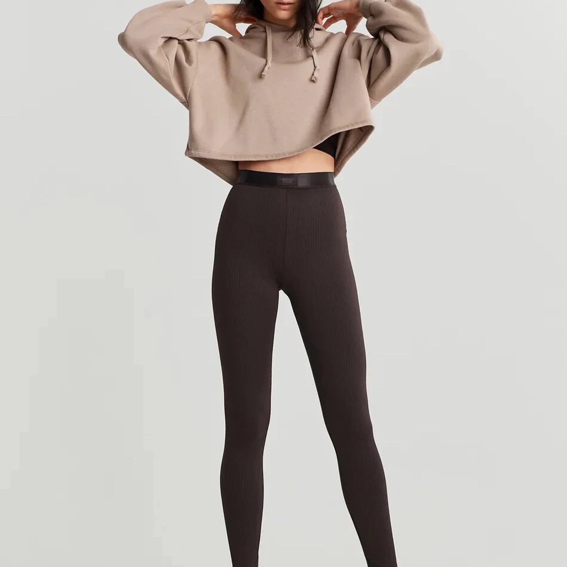 Såå bekväma bruna, ribbade träningstights🌟 nypris: 300. Säljer eftersom jag har andra liknande och dessa inte kommer till användning , de är helt nya! Passar även S🤎