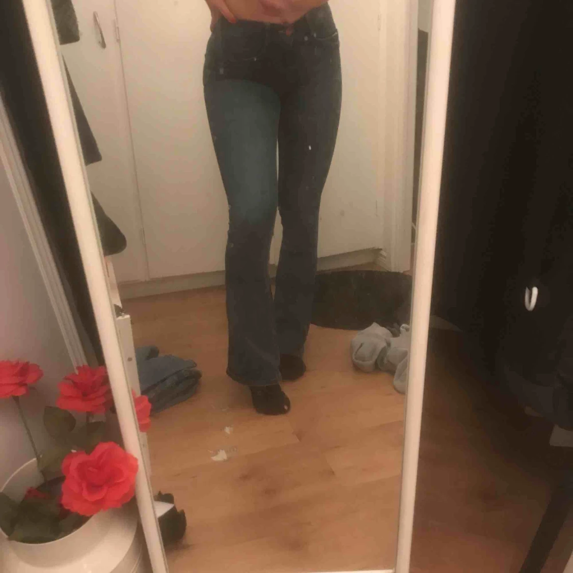 Bootcut jeans från bubbelrom. Dom är väl använda som ni ser på andra bilden har dom slitningar på rumpan men som är lätt att laga ❤️