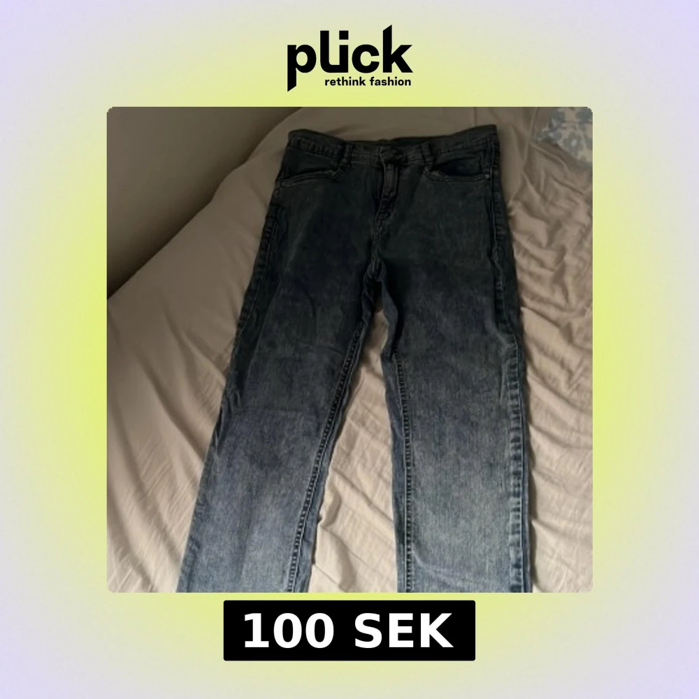 Säljer ett par klassiska blå jeansbyxor med rak passform. Byxorna har fem fickor, dragkedja och knapp framtill samt en ljus tvätt. Perfekta för en avslappnad stil.