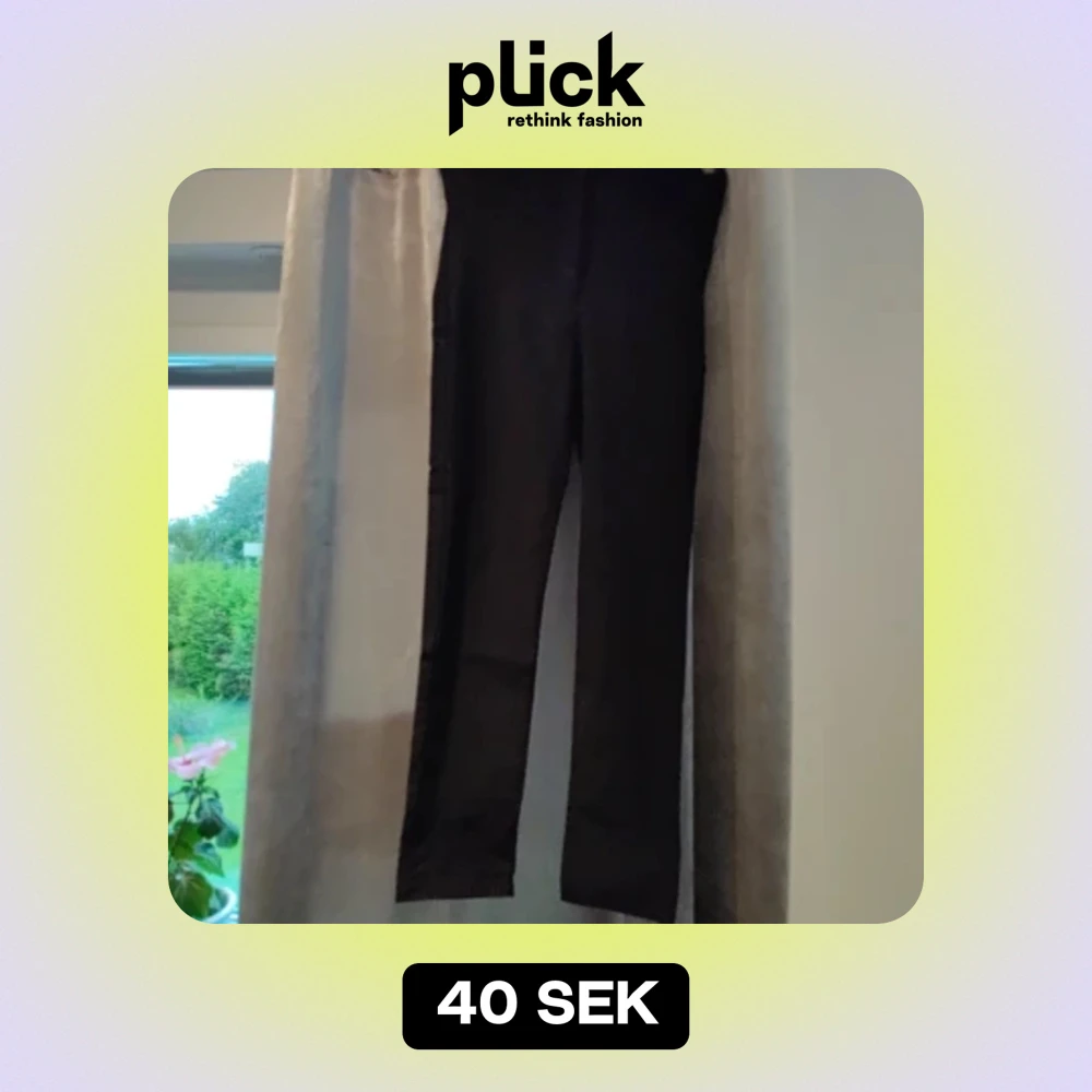 Svarta byxor med fickor i sidan. Byxorna har en smal passform och är i bra skick.