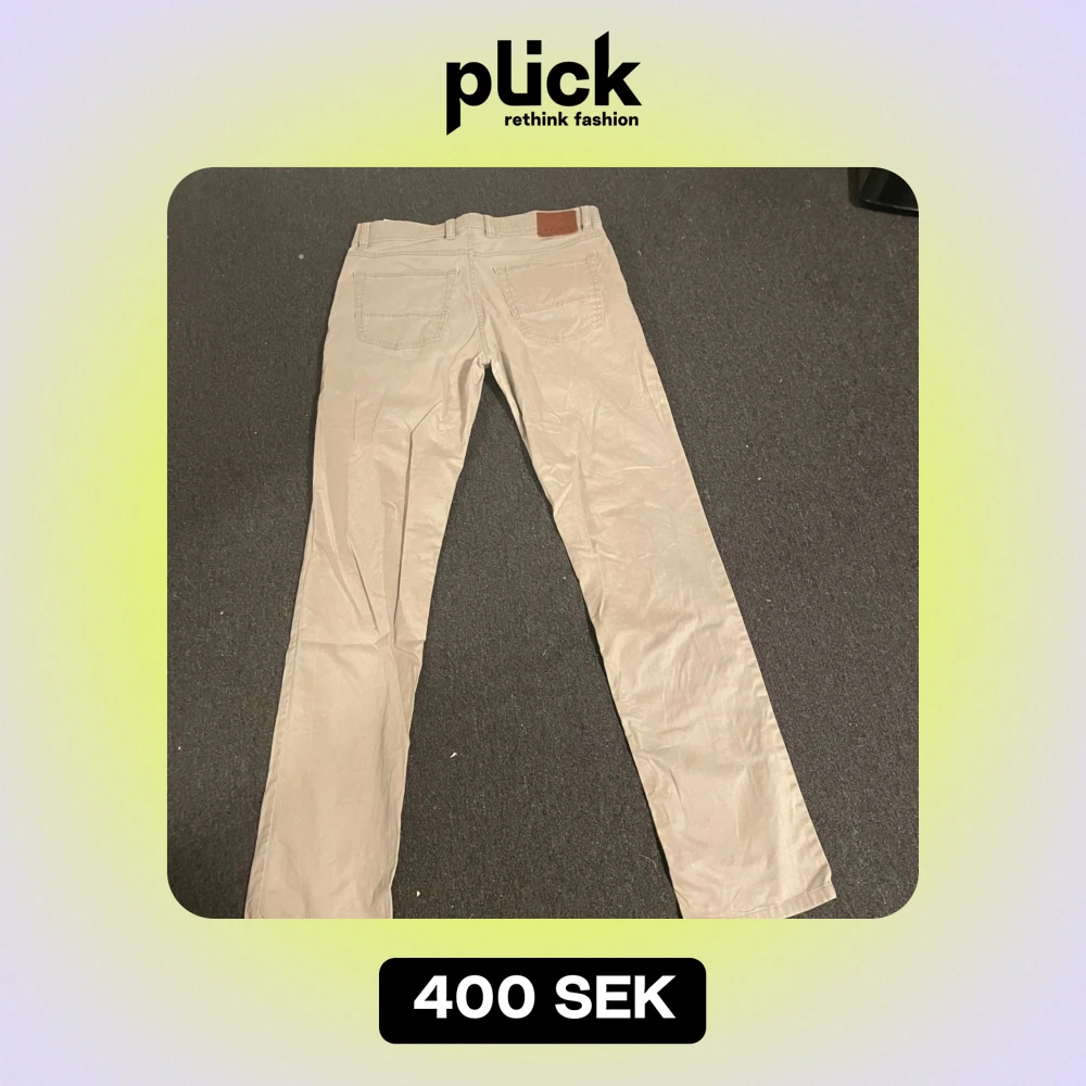 Säljer ett par beige Bugatti jeans. Byxorna är i bra skick förutom att lappen back sitter lite löst. Säljes pga att dom inte längre passar