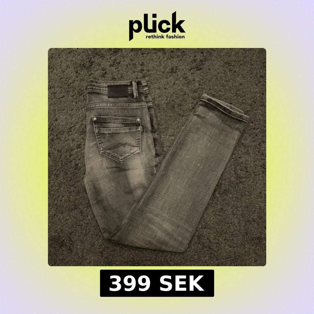 Snygga grå jeans från Deluxe med en klassisk femficksdesign. De har en diskret tvättad look och en bekväm passform. Perfekta för en stilren vardagslook. Köpta för strax över 1100 på best secret, barn storlek (176) men passar w27 l30 skulle jag säga, nästintill oanvända! oklart om det är ett stort märke eller inte men skit snygga jeans🤩🤩