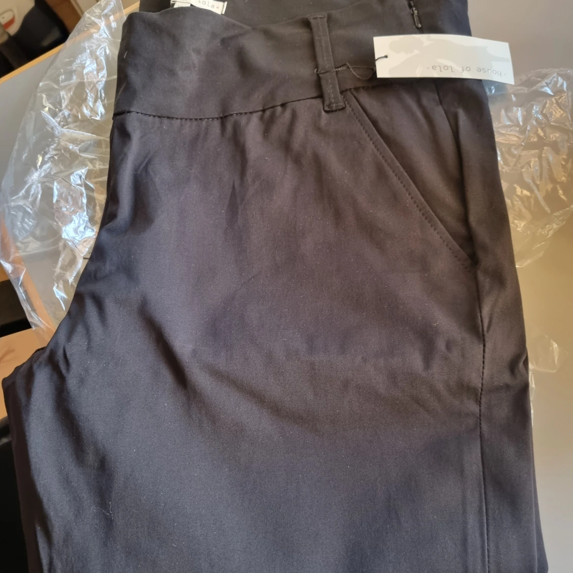 HELT NYA Fleur pants från Jouse of Lola, det är en stretchig smal byxa med hög midja. Benen är i 7/8 längd med ett litet sprund längst ner i sidsömmen. Fina fickor fram och fuskfickor bak. Dold dragkedja i sidan. En älva är broderad på ena höften.