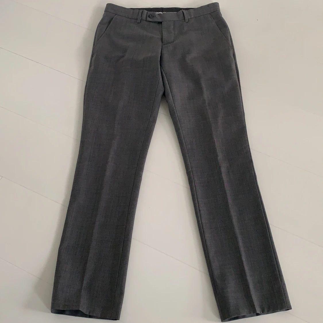 Bläck kostymbyxa, Dresstrouser. Size 46. I Sharkskin tyg. Bra skick som ny. Measurements: Waist: 41cm Outseam: 101cm Inseam: 80cm Leg opening: 19cm