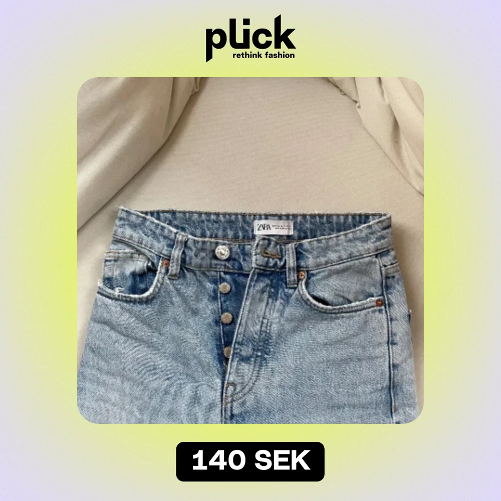 Skitsnygga jeans från Zara, ljusa, med silver knäppning och ”klippta” nertill. Mindre slitage vid ljumsken som behövs lagas så småningom.