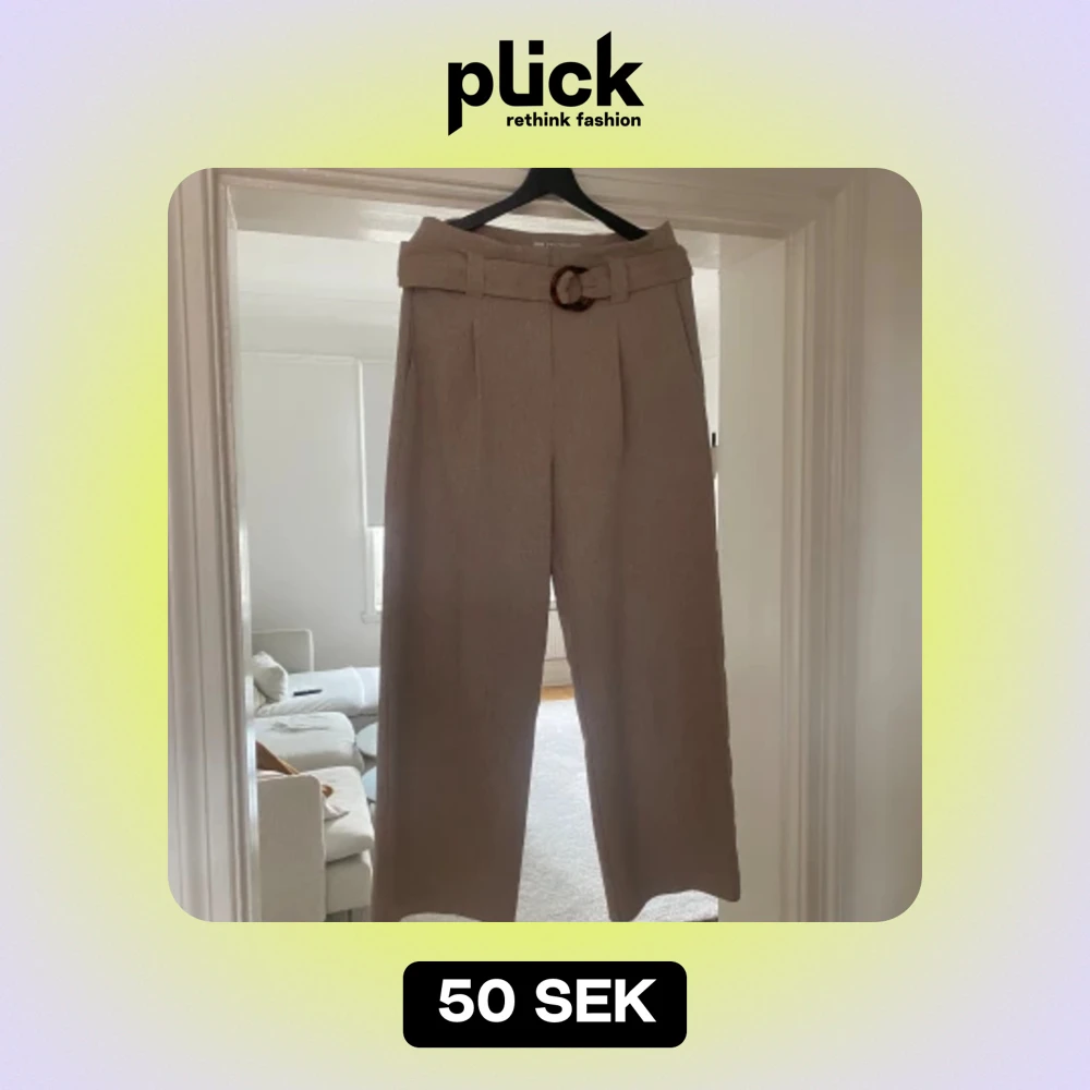 Raka byxor med lös passform från BikBok. Hög midja med pressveck och fickor på sidan. Skärp i midjan som går att ta av. Av lite kortare modell men man kan såklart välja hur högt man sätter dem i midjan.