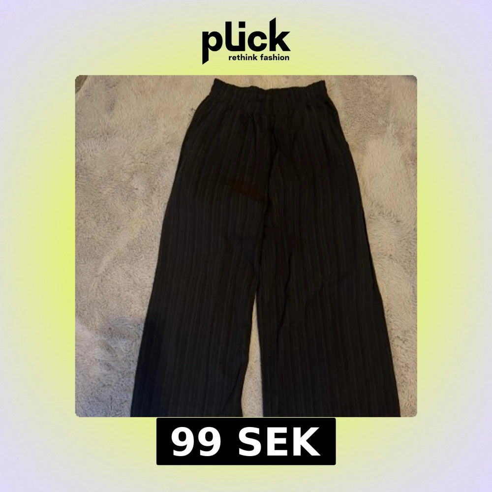 Svarta randiga byxor med vida ben. Snygga och bekväma. Strl går att variera, stretch i midjan
