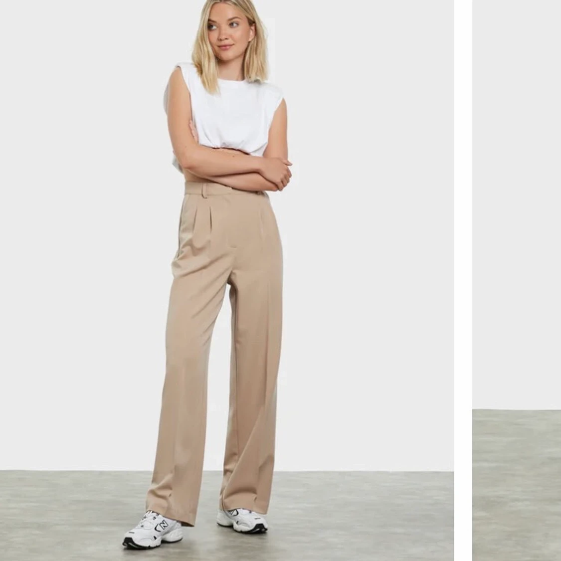 (LÅNADE BILDER) Säljer mina kostymbyxor! Superfina byxor med raka/vida ben och pressveck, går att klä upp och klä ned. Helt oanvända! (Lappar kvar) Säljer för att de var alldeles för stora på mig. Modellen på bild 2 & 3 är 180cm och har strl 36. Nypris: 499kr, köpare står för frakt! Skriv gärna om ni har frågor💕