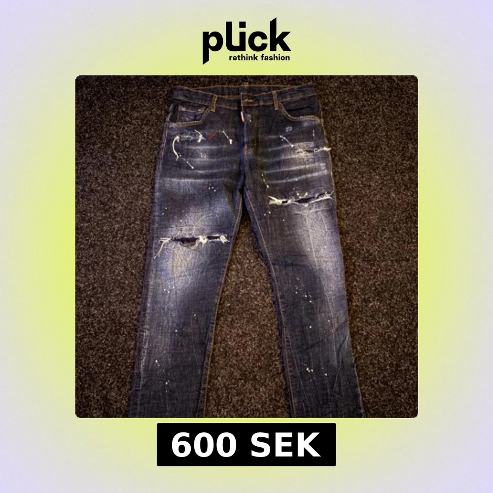 Mörk blåa DSQUARED2 jeans som är ganska nya saknas en knapp där man knäpper byxorna men annars är dom helt nya!