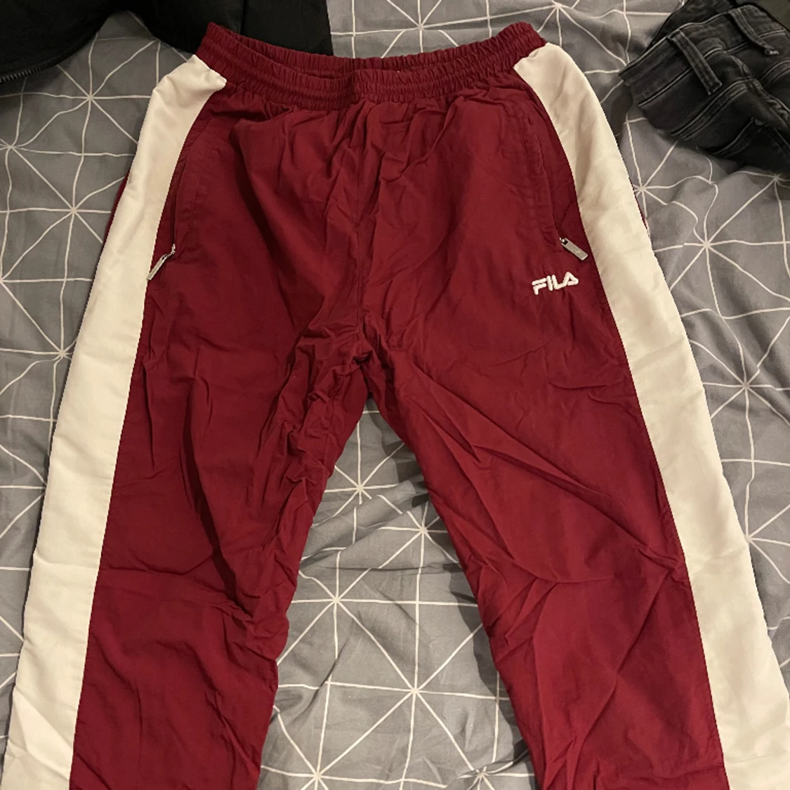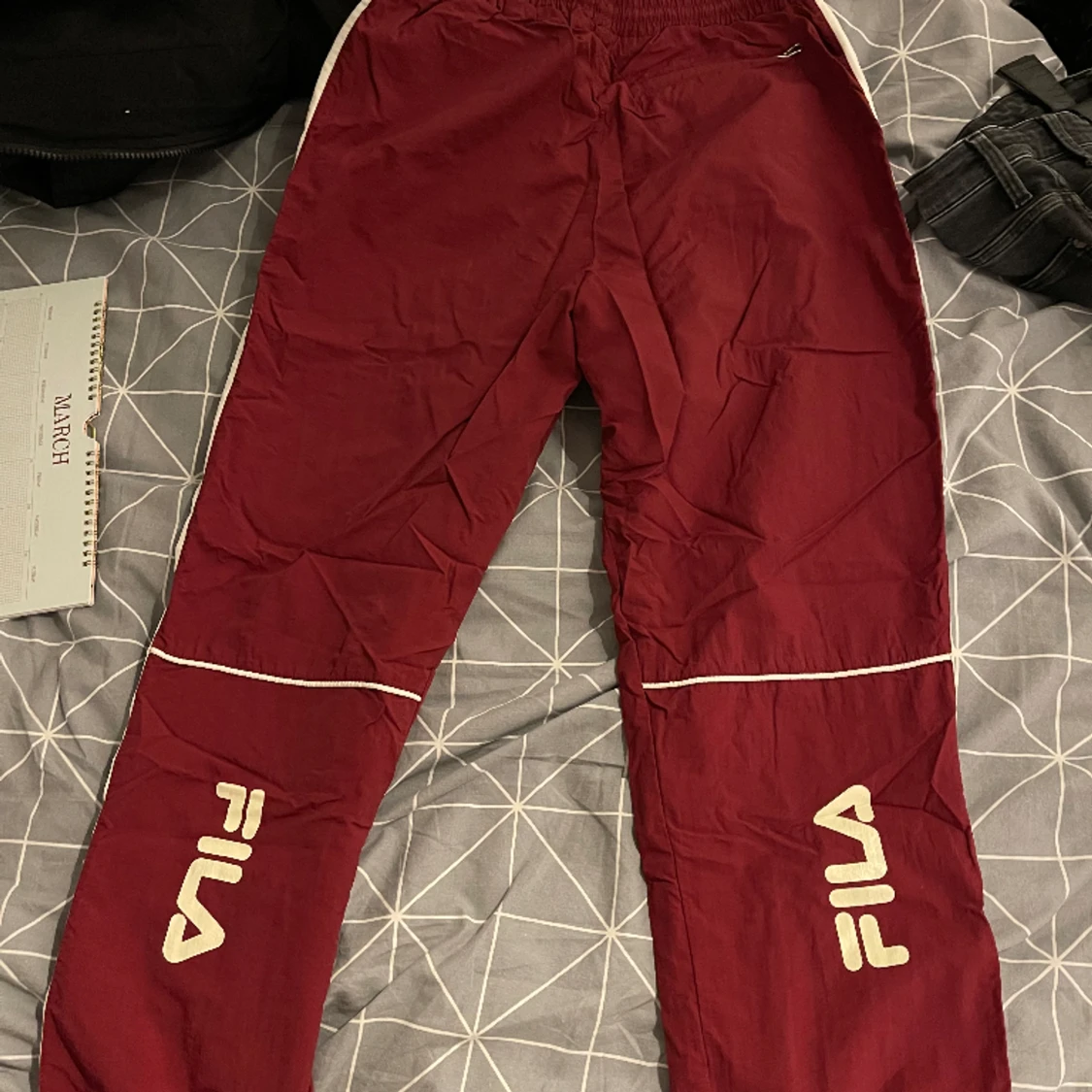 Mycket fina vinröda Fila byxor i storlek M. Använt endast några gånger. Köptes för runt 800kr