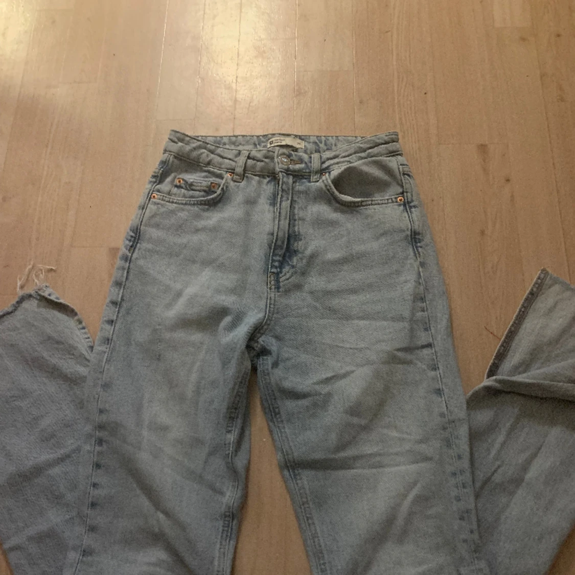High whisten Gina jeans med split nedtill. De är raka i modellen men är lite botcut samt💕 köpta för 399, säljer för 199❣️