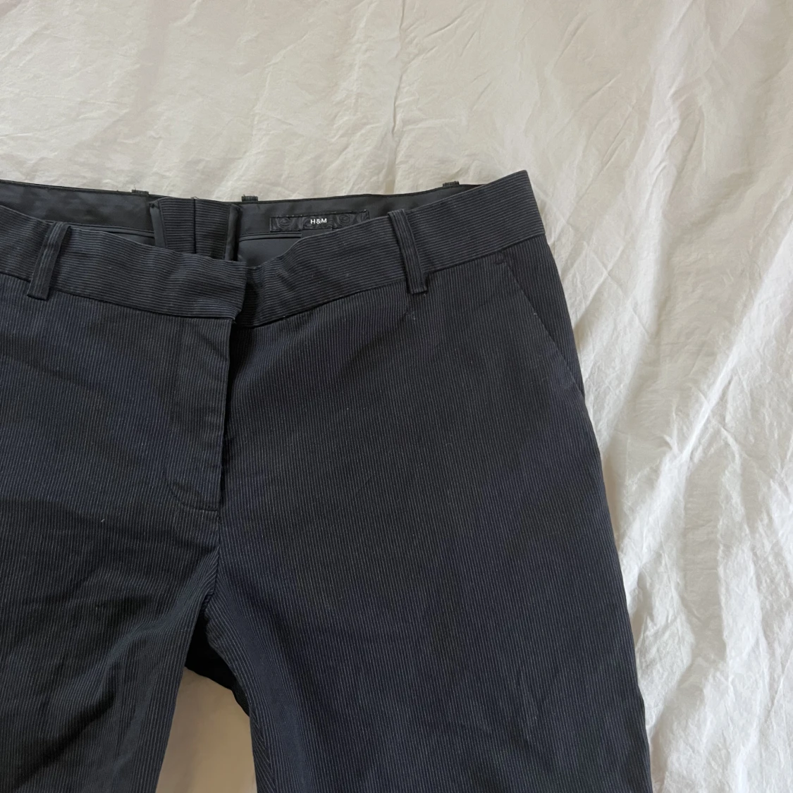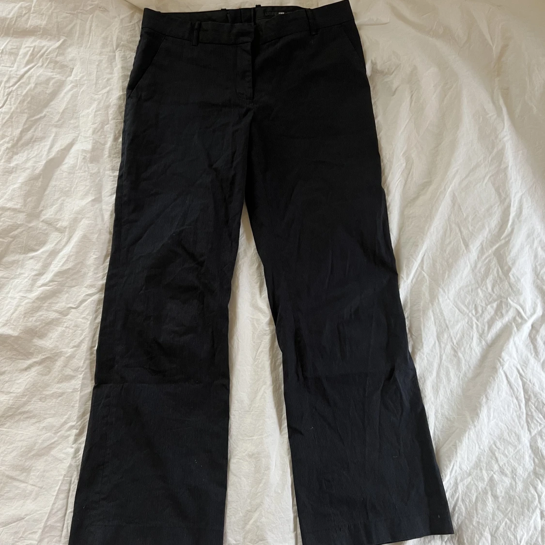 Fett snygga lågmidjade, smått randiga kostymbyxor. Står stl 38 men skulle mer säga 36 eller liten 38 kanske. Midjemåttet är 40cm och innerbensmåttet är 72cm. Hör av er vid frågor💗