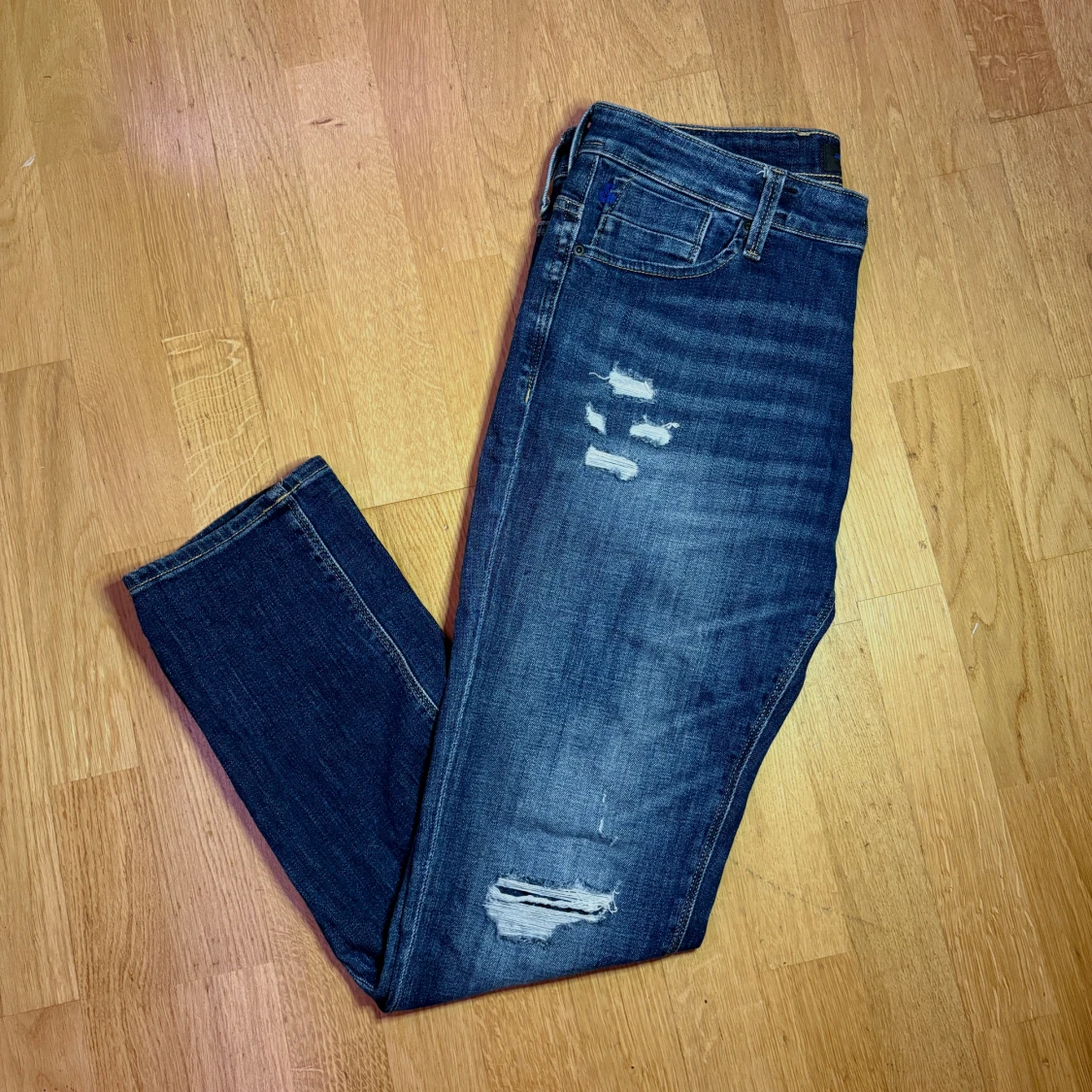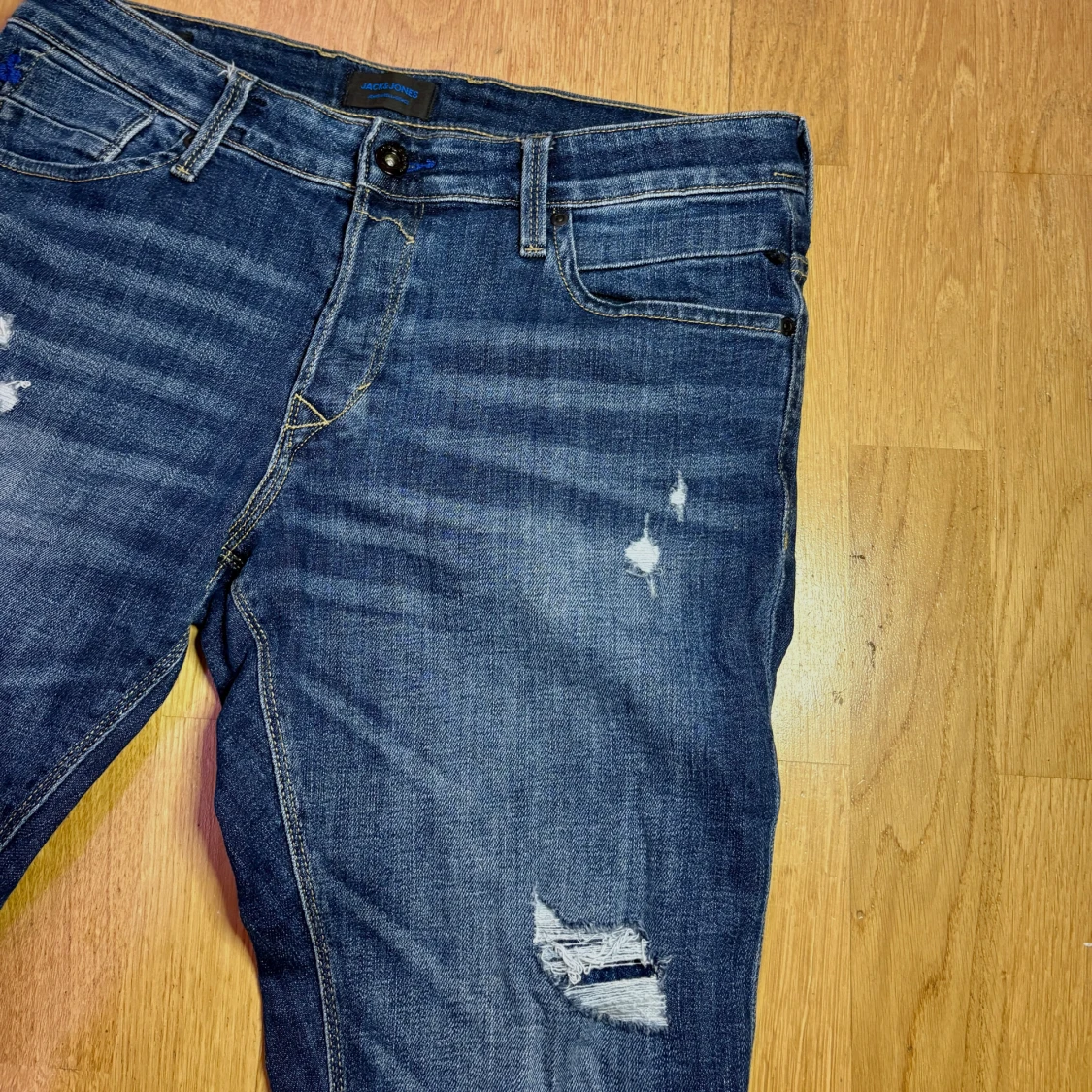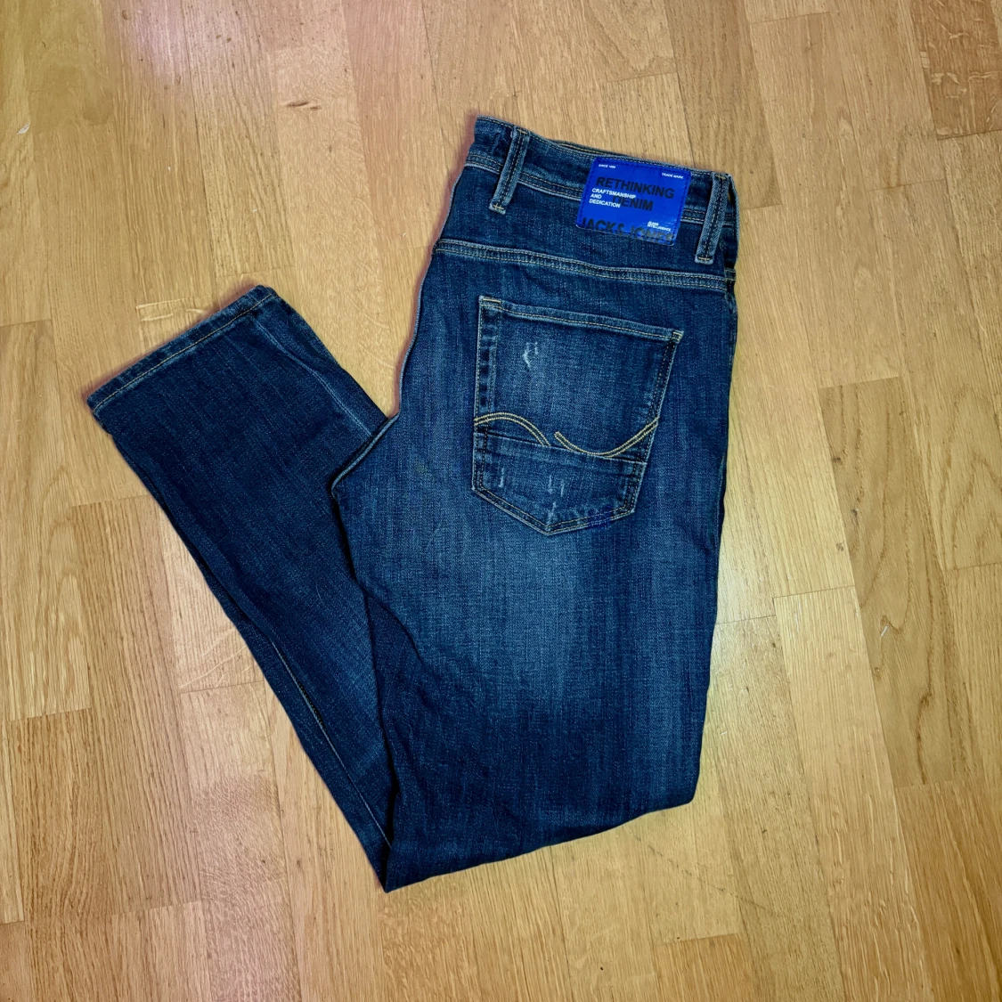 Jack & Jones slim fit jeans i storlek 34x32 med slitningar. Skick 9,5/10. Använda endast en gång. Skriv vid frågor och funderingar!