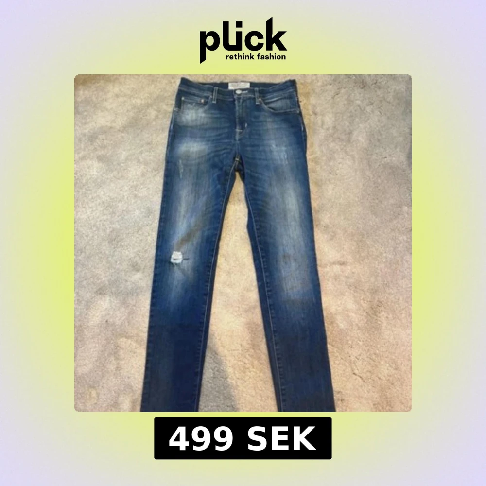 Snygga blå jeans från Jacob Cohen med en klassisk femficksdesign. De har en lätt slitning och en liten reva på ena benet för en trendig look. Perfekta för en avslappnad stil. Användna 3 gånger. Storlek 27 men sitter rätt mycket större. Plick skär bort delar av bilden så kom dm för bättre bilder💯 Mvh Doré.reselll