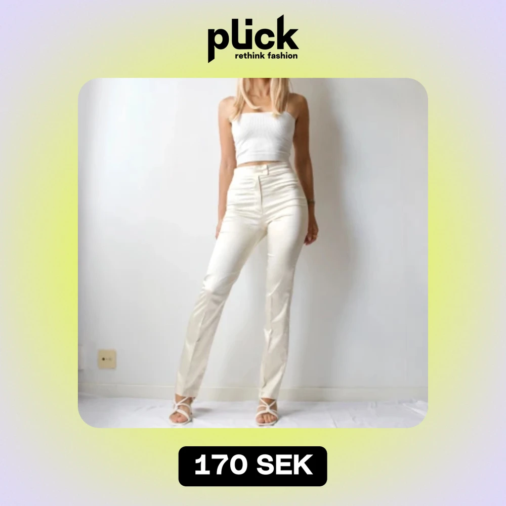 • SILKY SHINY CHAMPAGNE WHITE TROUSERS WITH SLIM / STRAIGHT FIT • SIZE - XS / EU 34