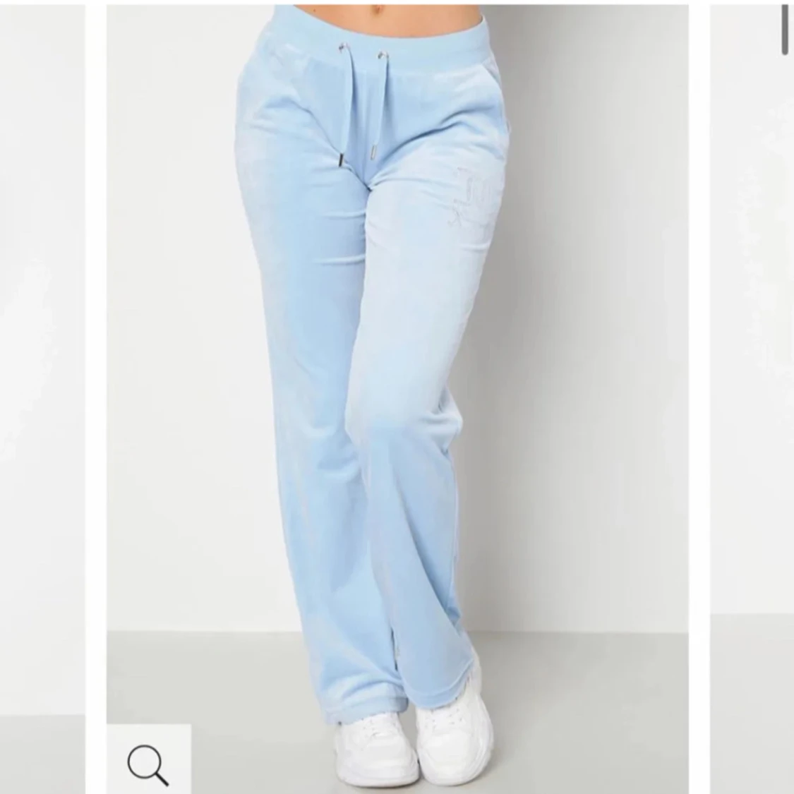 Snygga ljusblå mjukisbyxor med snörning i midjan. Perfekta för en avslappnad stil. Byxorna har en bekväm passform och är tillverkade i ett mjukt material. De är i bra skick!💓