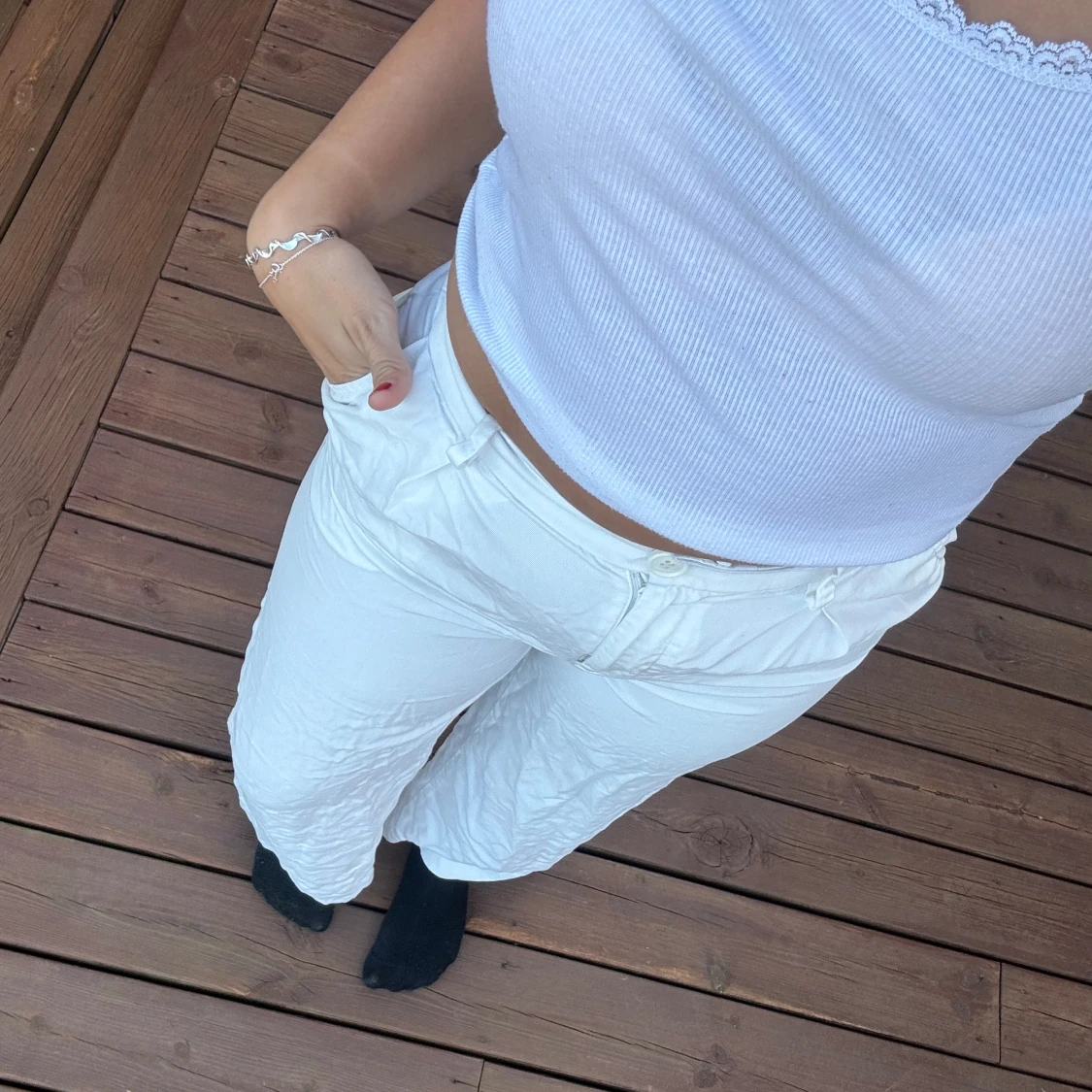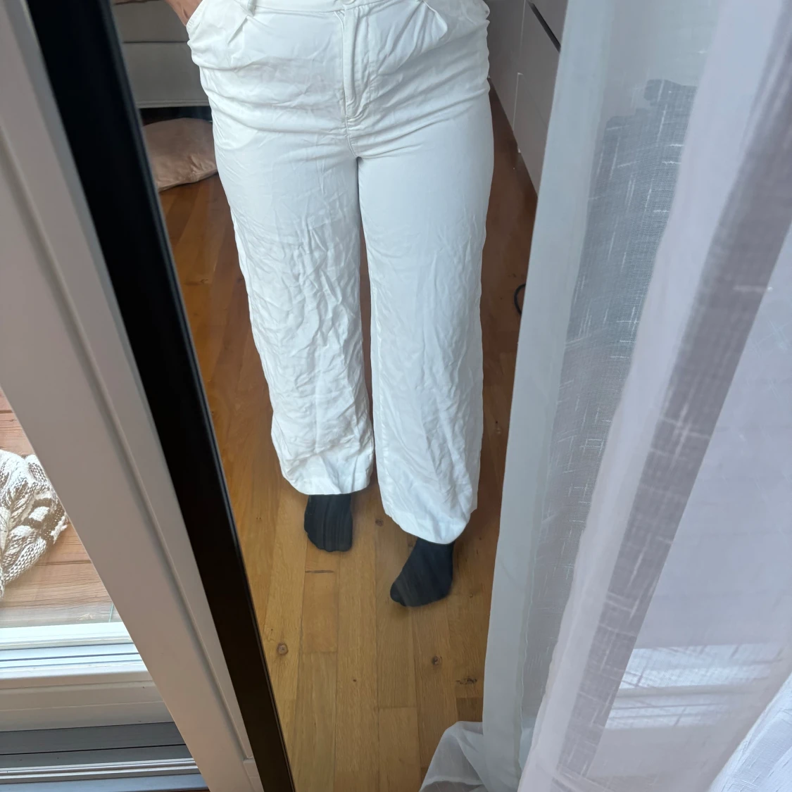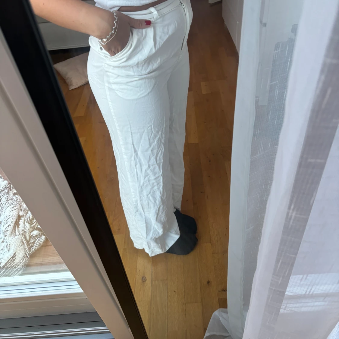Säljer dessa vita kostymbyxor i bra skick, superfina men kommer inte till användning. Obs ej strykta på bilden!!