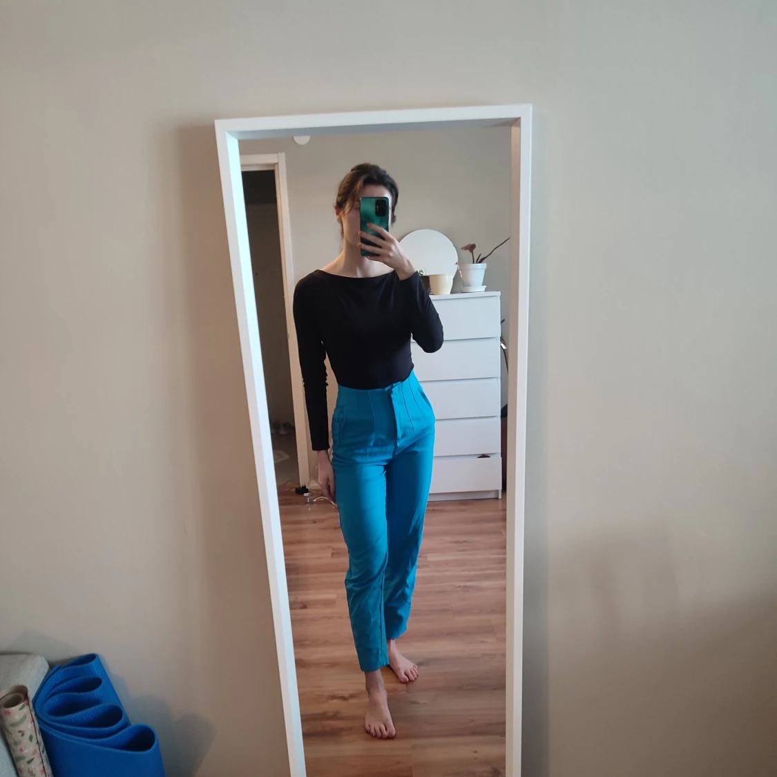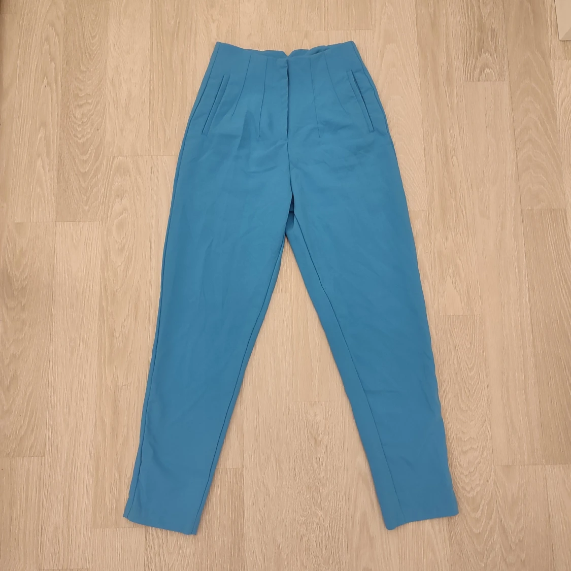 Snygga blåa byxor från Amisu med hög midja och en stilren design. Perfekta för att ge en färgklick till din outfit. Byxorna ger en väldigt fin passform och är tillverkade i ett bekvämt material.