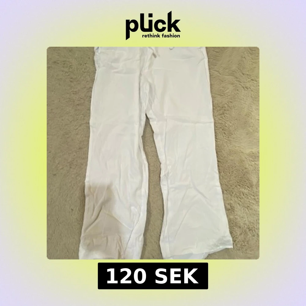 Snygga och luftiga vita linnebyxor från 157 i storlek XS. Byxorna har rak passform, resår i midjan och är perfekta för varma dagar. Stilen är enkel och fräsch, passar till allt och ger en chill vibe. Byxorna är insydda vid slutet av benen då dem var lite för långa för mig men passar alla som är från 150-160. Använt dem en gång och är nya