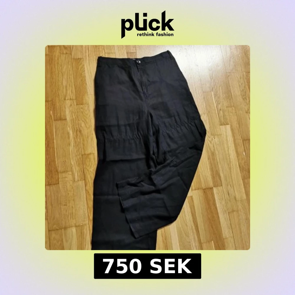 Super snygga svarta linnebyxor från InWear med rak och lite loose passform. Byxorna har resår i midjan, knappstängning. Perfekta för en chill och stilren look, passar bra nu till sommaren med kanske ett par sandaler. Nypris cirka 1200kr, pris kan diskuteras. hör av er vid eventuella frågor💕💕