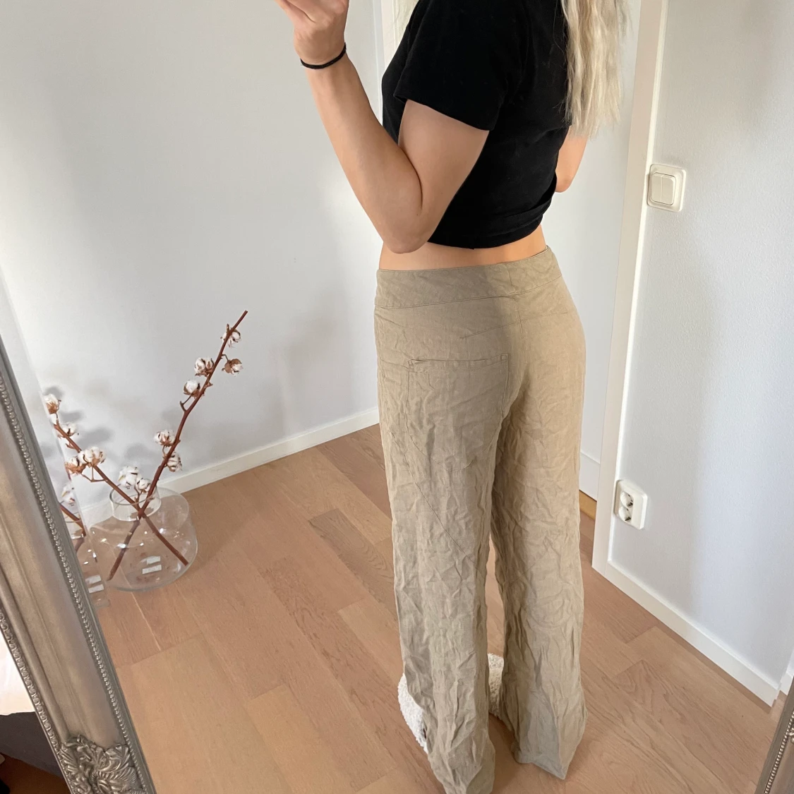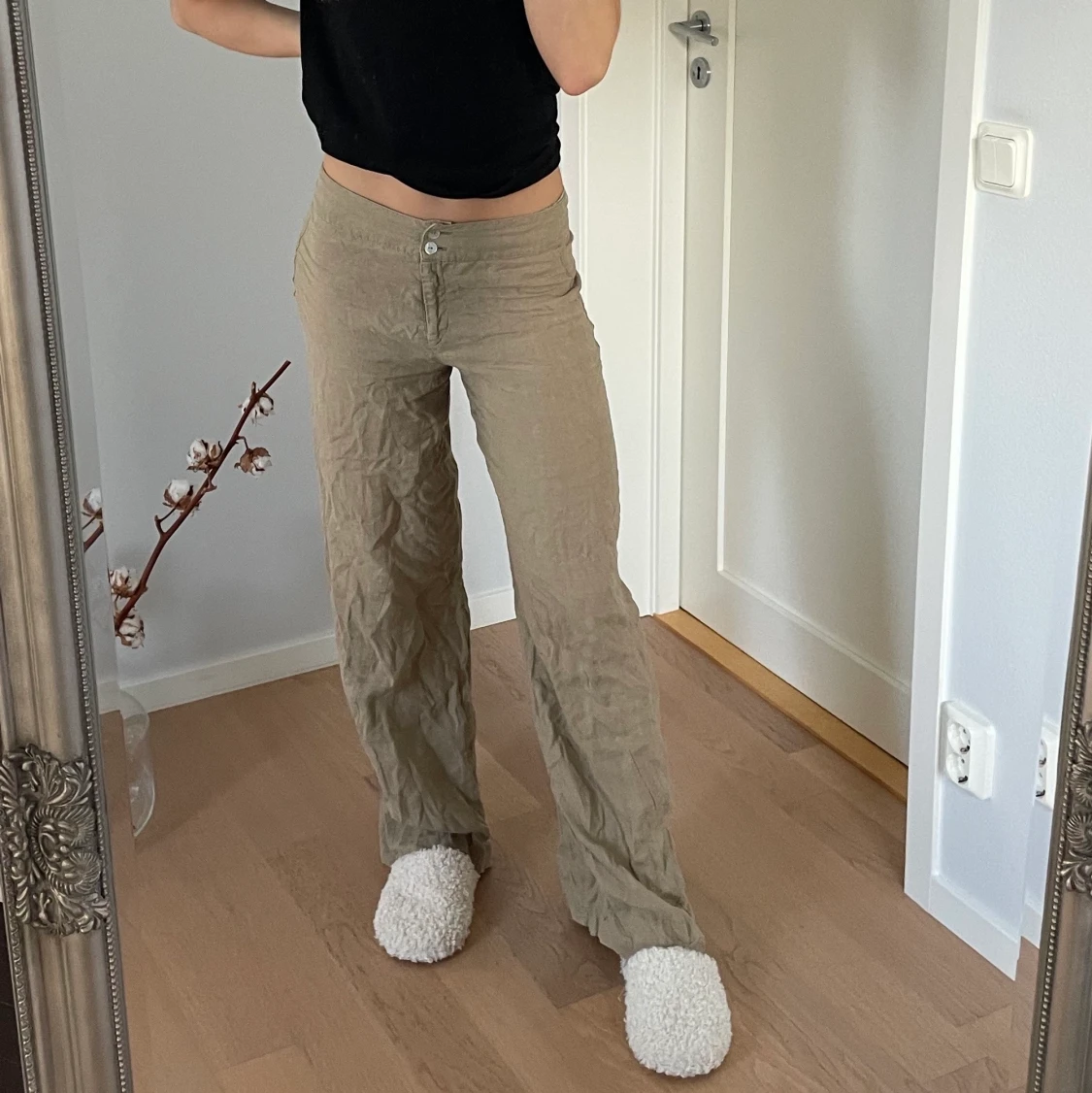 Snygga linnebyxor som är lite skrynkliga på bilden!