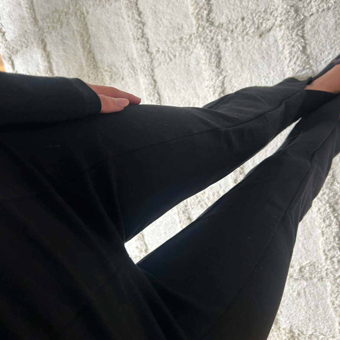 Svarta byxor med hög midja och söm framtill. Byxorna har även en slits framtill. Går att styla riktigt snyggt! Mycket bra skick!!