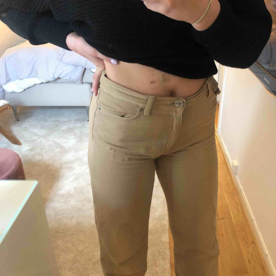 As trendiga beiga vida byxor. Modellen Yoko från monki. Jätte bekväma