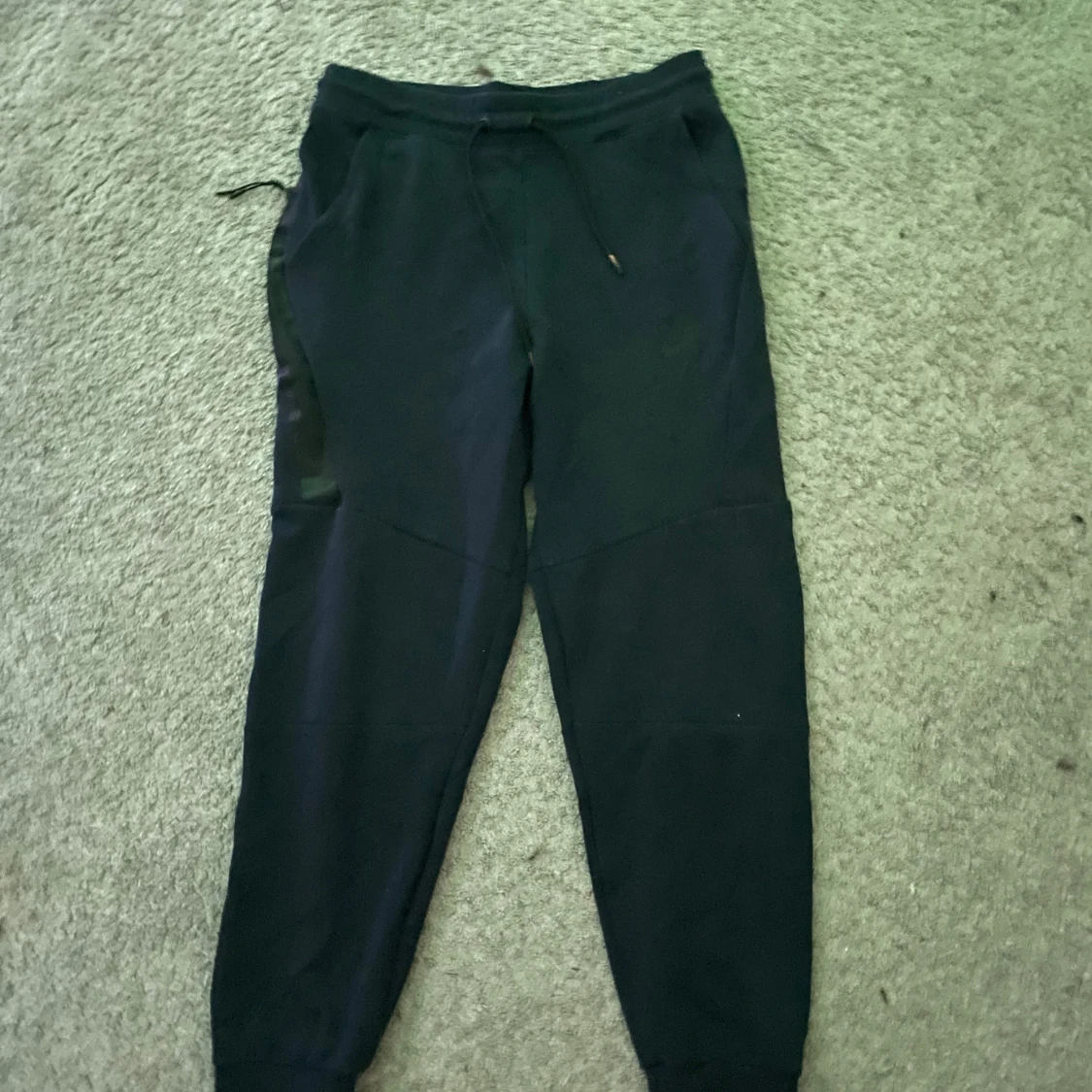 Mörkblå Nike tech byxor från Nike med dragsko i midjan och muddar vid bensluten. Byxorna har en enkel och clean design, perfekt för chill eller träning. Tillverkade i mjukt material för maximal komfort.
