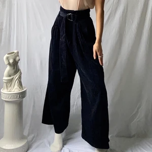🌊 STYLISH WIDE DARK NAVY CORDUROY PANTS, HIGHWAISTED WITH LONG BELT AND SILVER CIRCLE HOOP • SIZE - XS/ EU 34 / US 4 • BRAND - & Other Stories • MATERIAL - Corduroy / Manchester MY MEASUREMENTS • Height 161cm / 5'3" • Size EU 34/ US XS (2) / UK 6 • Pants 26/30 // ▪Waist 62cm / 24" y2k 90s 80s 70s 60s spring summer sunny autumn winter grey brown white black crop top tshirt strap shirt blouse jumper polo cape coat bolero orange yellow jacket sparkly party evening green grey silver gold velvet knit vest sweater v neck skirt bottoms pants jeans shorts shows acne studios eytys manchester blue black wide leg bootcut byxor kjol klänning blå blåa blått marinblå silver bälte
