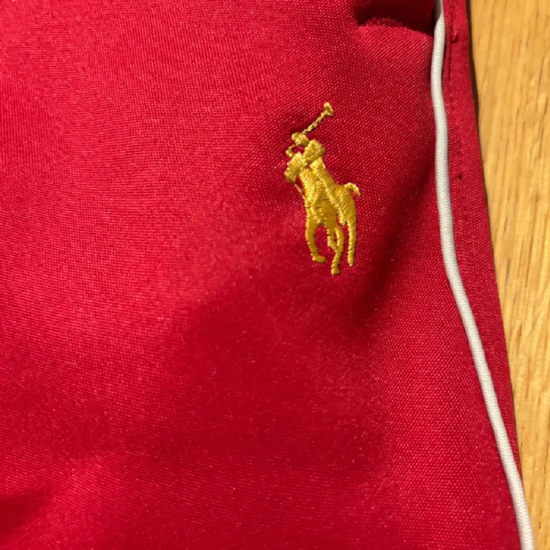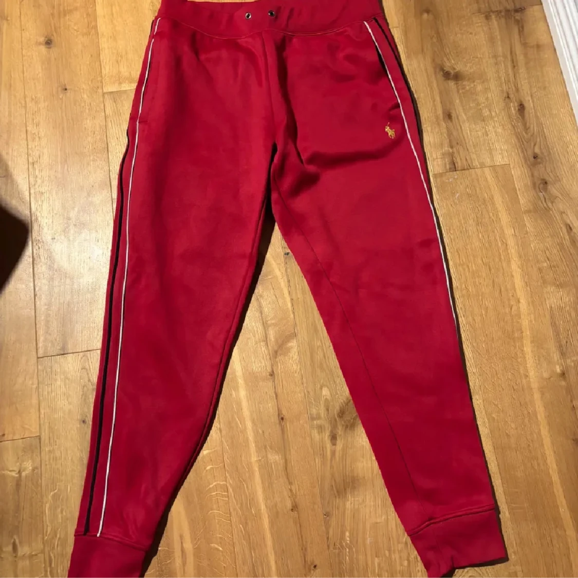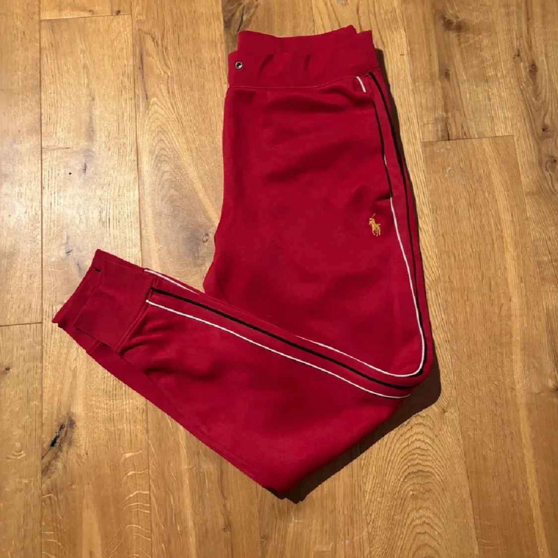 Snygga unika röda mjukisbyxor från Polo Ralph Lauren med vita ränder längs sidorna. Skick: 9/10 nästan helt nya! Pris ej hugget i sten! MVH Hugo