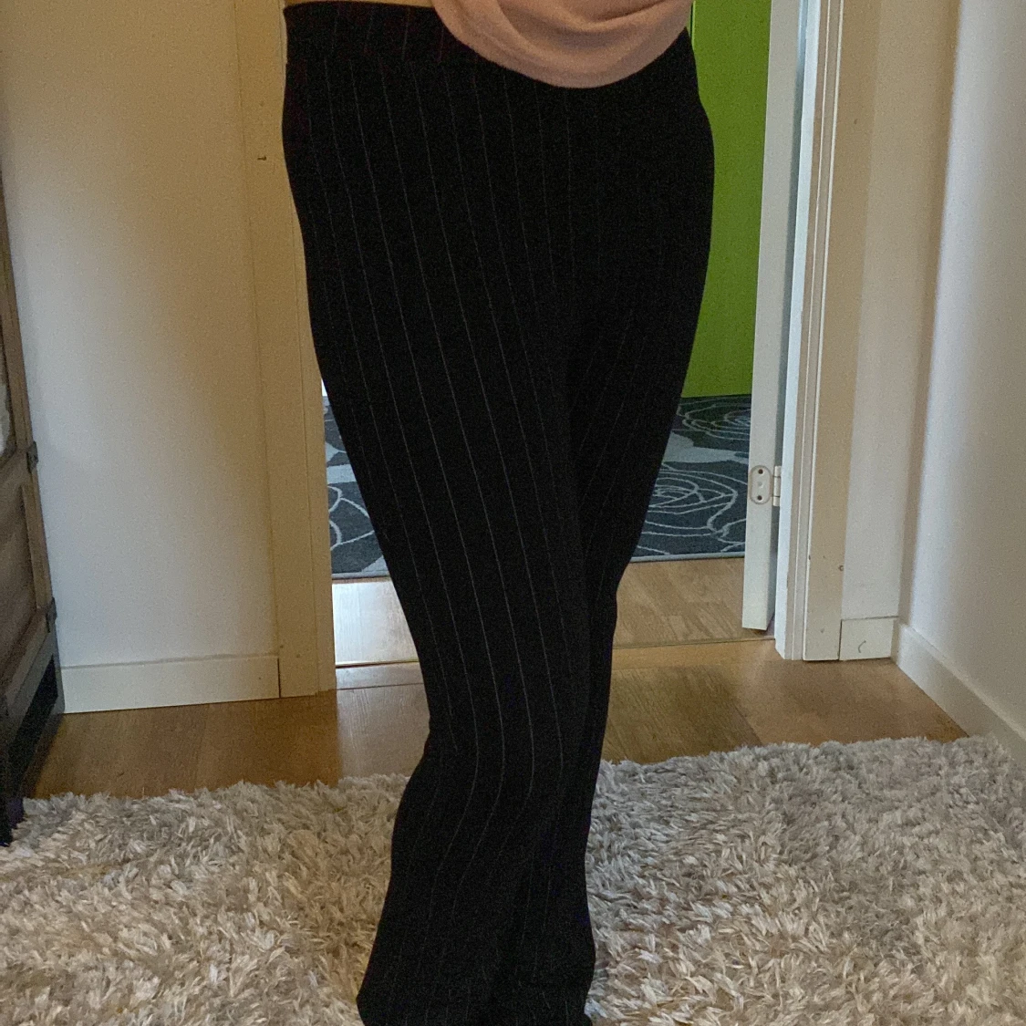 Svarta randiga bootcut byxor
